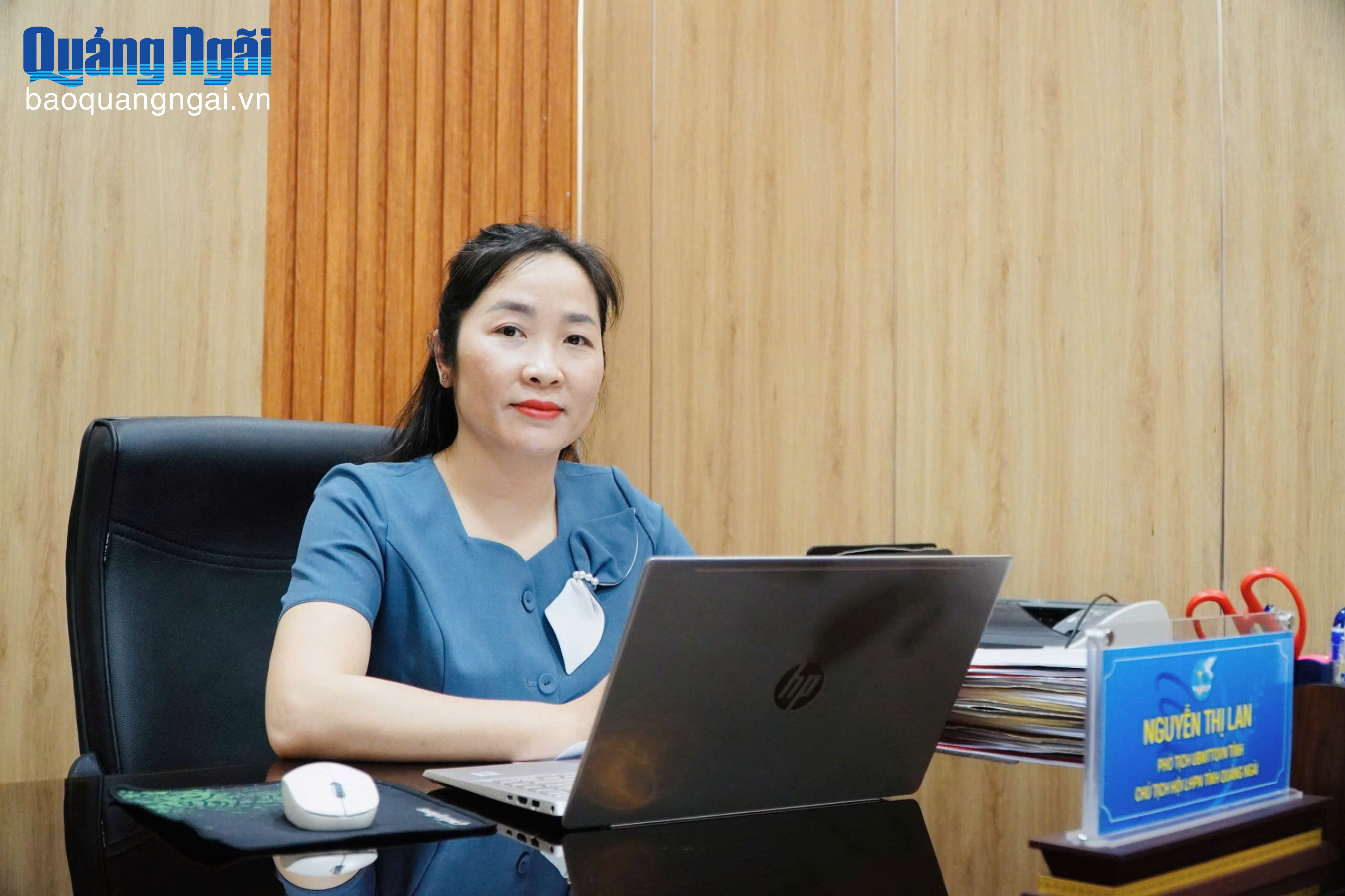 Bà Nguyễn Thị Lan: Nhằm xây dựng hình ảnh người phụ nữ Việt Nam thời đại mới theo tinh thần chỉ đạo của Tổng Bí thư Tô Lâm: “Yêu nước - Tự chủ - Bản lĩnh - Nhân ái - Trí tuệ - Sáng tạo - Trách nhiệm - Số - Xanh”, Hội LHPN tỉnh đang triển khai Phong trào thi đua “Xây dựng người phụ nữ Quảng Ngãi thời đại mới: Nghĩa tình - tri thức - số hóa - thân thiện môi trường”.