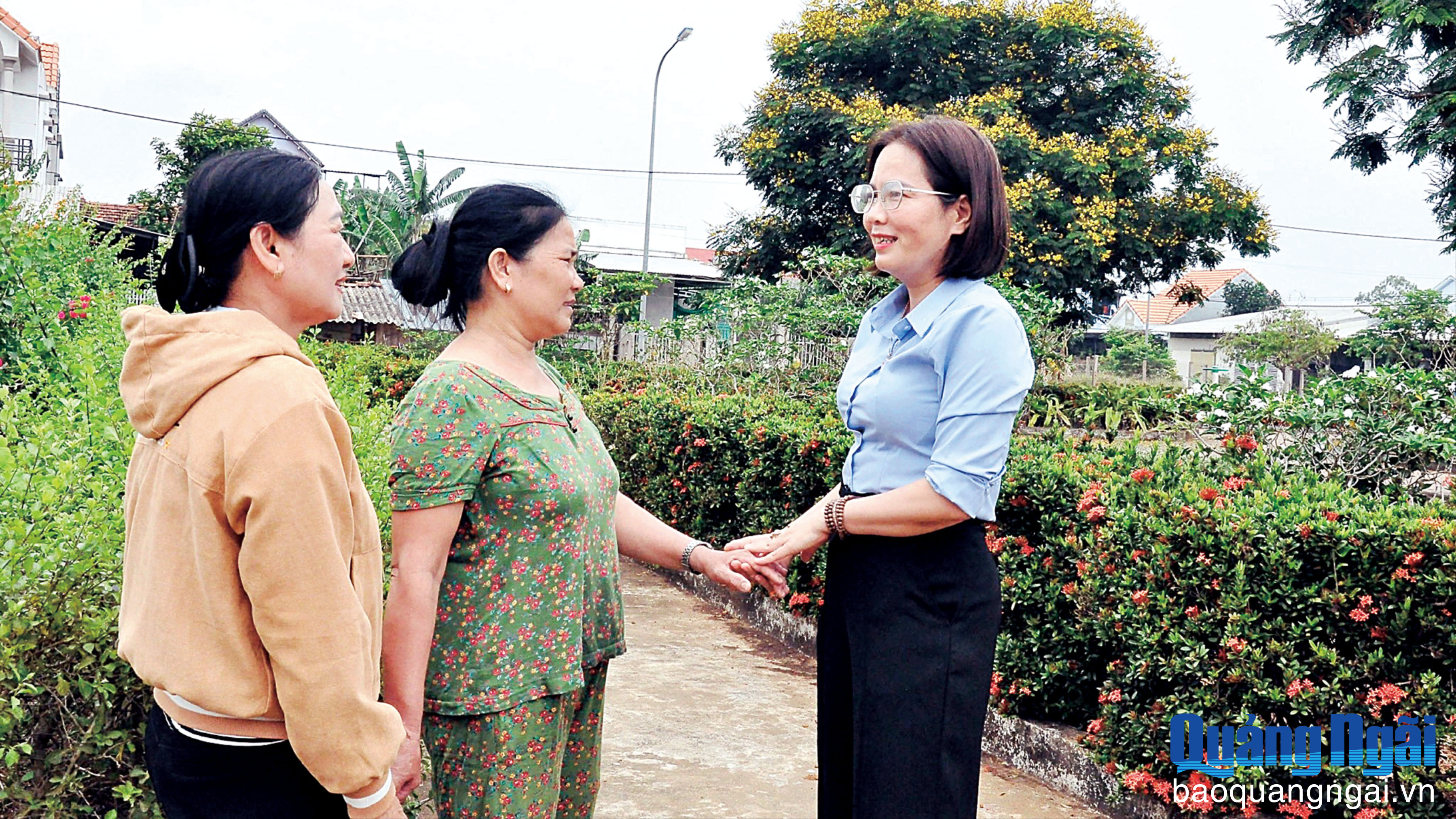 Phó Chủ tịch Ủy ban MTTQ Việt Nam, Chủ tịch Hội LHPN xã Vạn Tường Nguyễn Thị Ngọc Tâm (bên phải) thường xuyên lắng nghe, nắm bắt tâm tư hội viên. Ảnh: H.THU