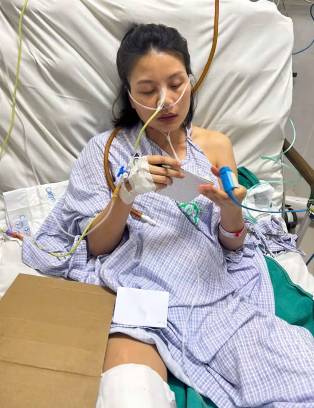 Gia đình đưa chị vào bệnh viện và chuyển xuống Bệnh viện Bạch Mai (Hà Nội) trong tình trạng ngàn cân treo sợi tóc.