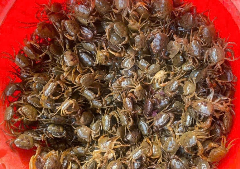 Cua đồng (dam) được rửa sạch sẽ trước khi chế biến.