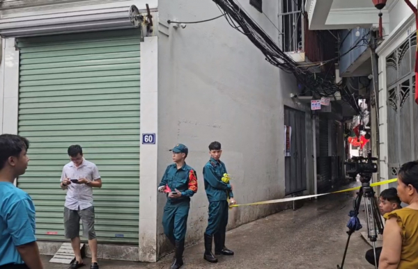 Lực lượng chức năng chăng dây bảo vệ hiện trường từ ngoài ngõ.