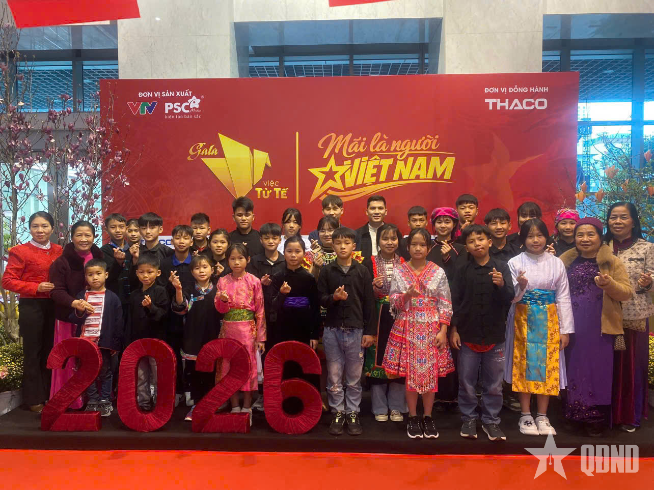 Thầy giáo Nguyễn Văn Diện và các cháu "Mái ấm Dương Hiển" tại Gala "Việc tử tế" do Đài Truyền hình Việt Nam tổ chức đầu năm 2026.