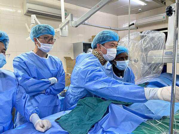 GS.TS Phạm Mạnh Hùng và cộng sự trong một lần thực hiện ca can thiệp tim mạch.