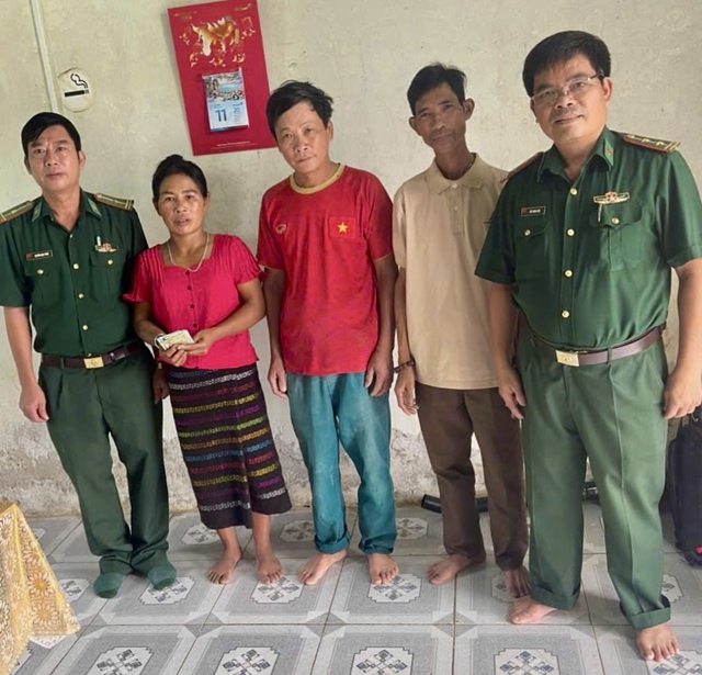Ông Sâm (áo đỏ) cùng cán bộ biên phòng trao trả tài sản cho người đánh rơi (ảnh: BĐBPQT).