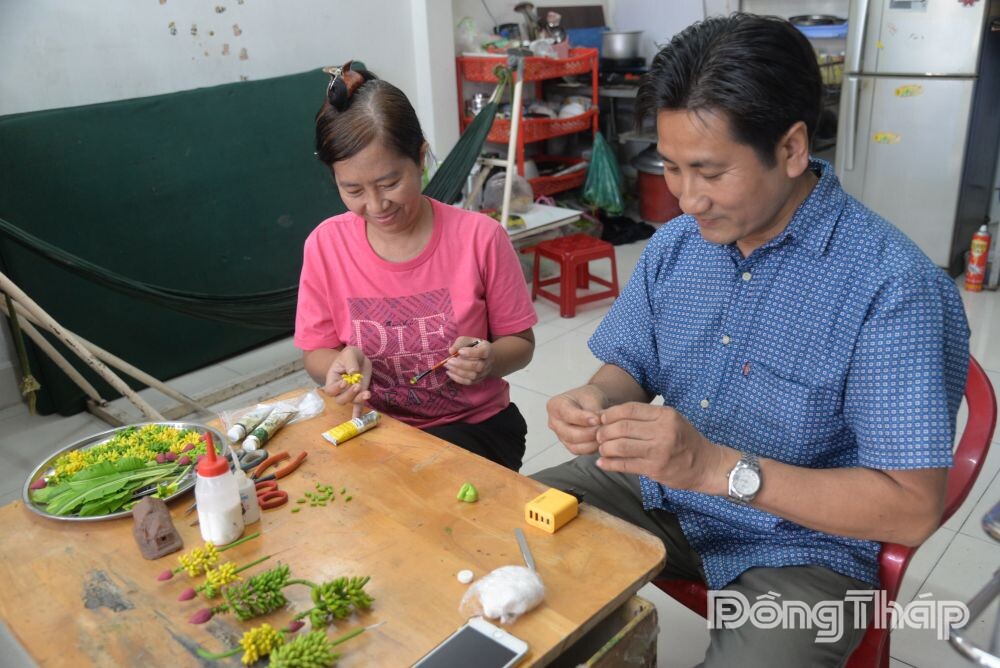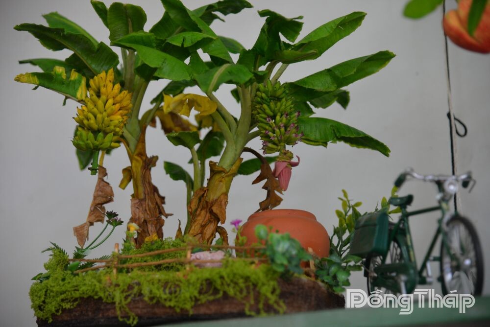 Mỗi công đoạn đều đòi hỏi sự tập trung cao độ, đôi tay khéo léo và óc quan sát tinh tế. Dù đã làm hàng trăm sản phẩm với nhiều thể loại khác nhau như: Cây cảnh, hoa, lá…, nhưng thế mạnh của anh Sang vẫn là tiểu cảnh cây chuối, buồng chuối - hình ảnh gần gũi, thân quen với làng quê Nam bộ.