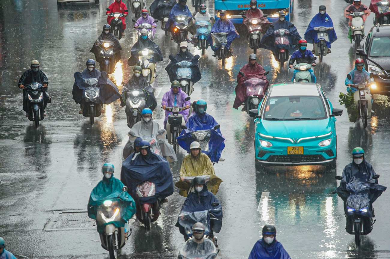VIDEO: Người Hà Nội chật vật di chuyển giữa mưa lớn và ùn tắc giao thông.