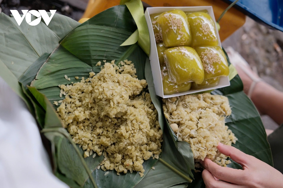 Những thức quà thu quen thuộc như xôi cốm, cốm... được nhóm chị Minh chuẩn bị mang theo để vừa thưởng thức, vừa trò chuyện giữa tiết trời se lạnh.