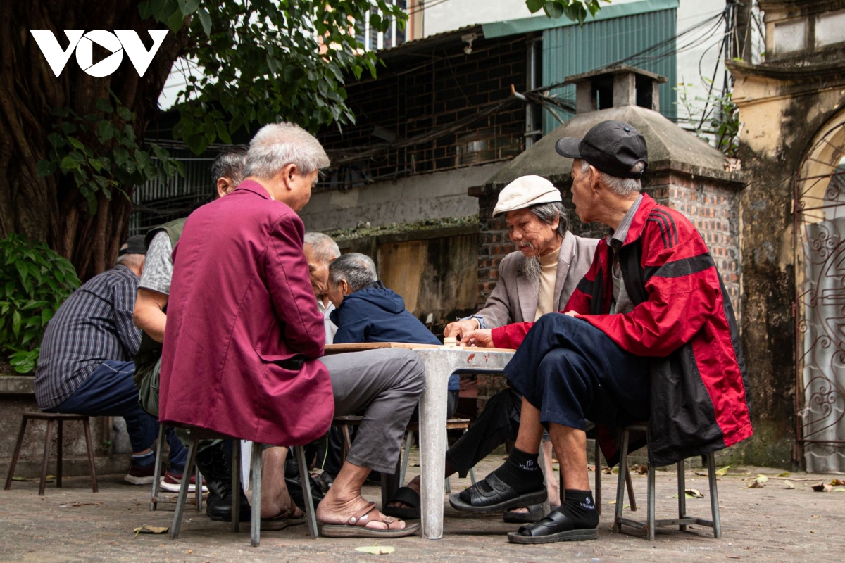 Trời lạnh khiến những người chơi cờ bên vỉa hè phải mặc áo ấm, ngồi co ro nhưng vẫn say sưa theo từng nước đi.