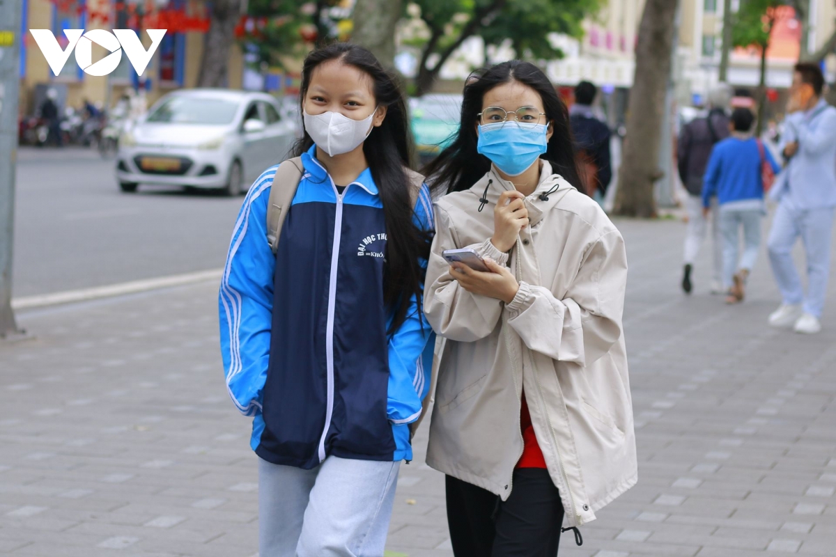 Đến khoảng 14 giờ ngày 23/10, nhiệt độ tại Hà Nội chỉ khoảng 20 độ C, gió lạnh kèm mưa nhỏ khiến nhiều người đi đường phải mặc áo khoác dày, bịt kín khi di chuyển.