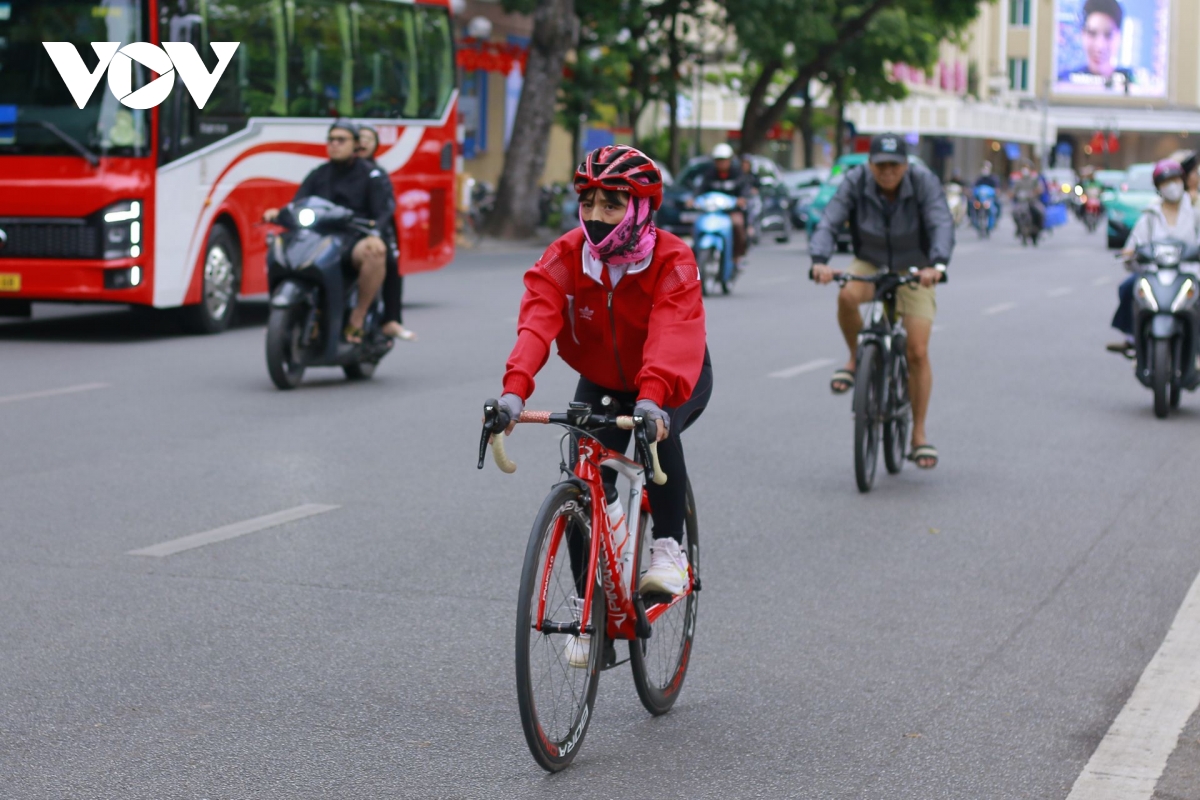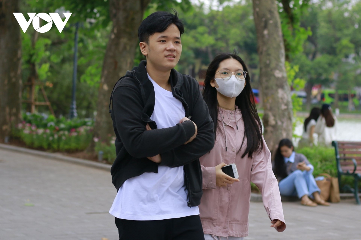 Chỉ mặc một lớp áo mỏng ra đường, Thanh Tùng vừa đi vừa xuýt xoa “lạnh quá”, co ro giữa làn gió lớn thổi qua bờ hồ Gươm.