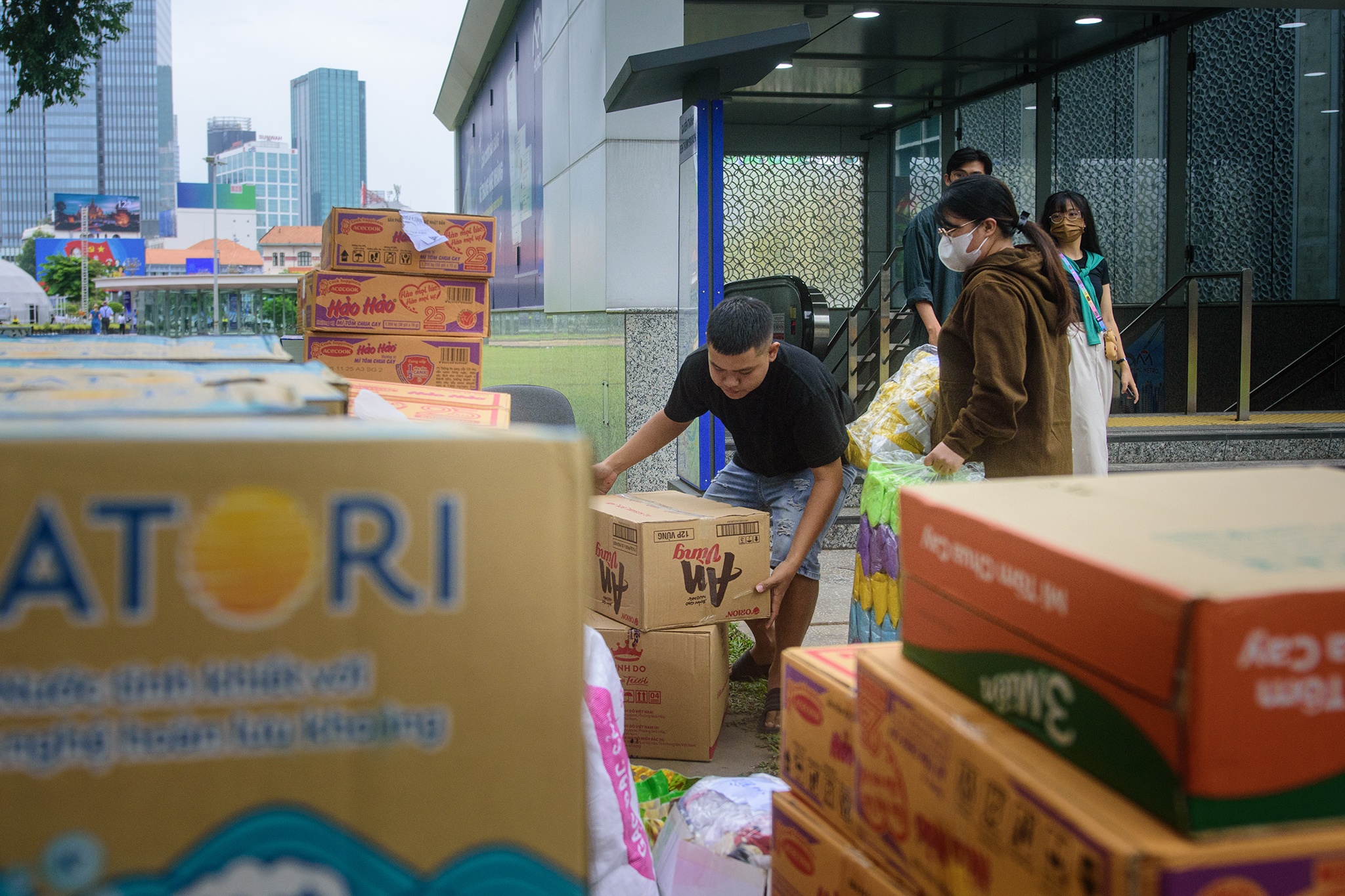 Không chỉ Ga Bến Thành, tại các ga Nhà hát Thành phố hay Văn Thánh… vẫn tấp nập người dân mang hàng cứu trợ đến. Các tình nguyện viên đều đăng ký trực xuyên đêm, để đảm bảo hàng cứu trợ kịp lên xe, kịp đến tay đồng bào miền Trung và Tây Nguyên.