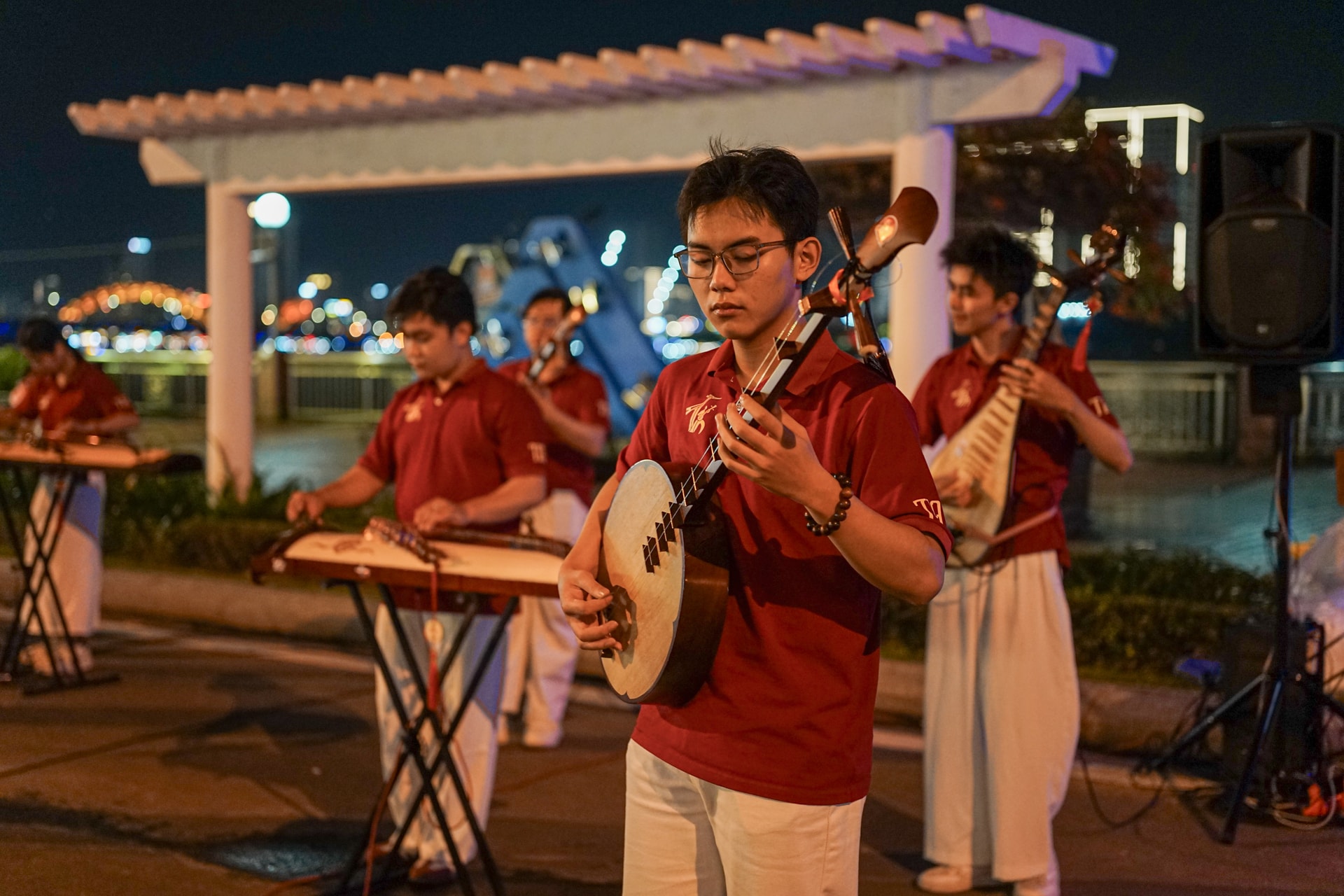 Hòa trong không gian rộn ràng của phố đi bộ Bạch Đằng (phường Hòa Cường) tối 15/3, nhiều người dân, du khách thích thú với chương trình âm nhạc cộng đồng mang chủ đề “Tinh hoa Việt Nam” do Câu lạc bộ Nhạc cụ dân tộc thuộc Trường Đại học FPT Đà Nẵng (TIA - FPT Traditional Instruments Abide Club) tổ chức.