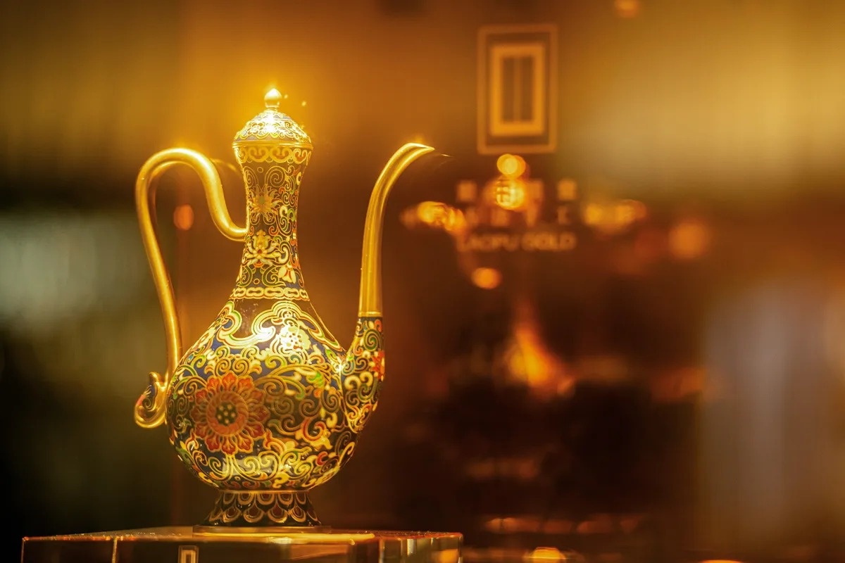 Một ấm trà trang trí được trưng bày tại cửa hàng Laopu Gold. Ảnh: Bloomberg.