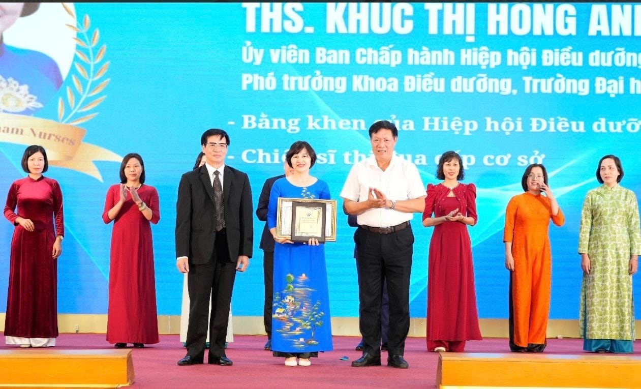 Bà Khúc Thị Hồng Anh vinh dự đón nhận Bằng khen của Hiệp hội Điều dưỡng Việt Nam tôn vinh Điều dưỡng viên tiêu biểu. Ảnh: NVCC