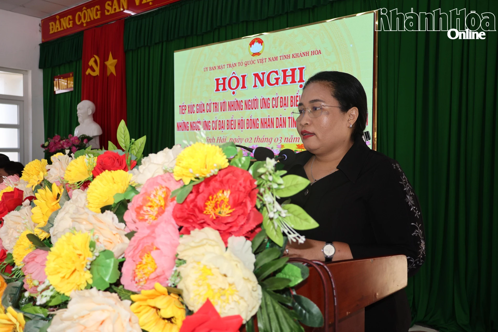 Bà Chamaleá Thị Thủy trình bày chương trình hành động tại hội nghị tiếp xúc cử tri.