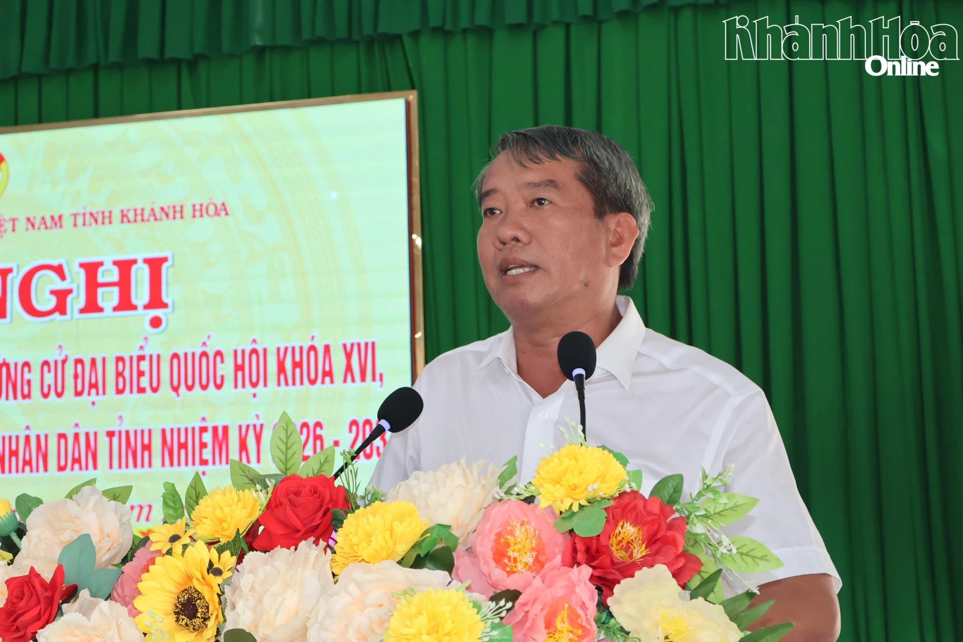 Tại hội nghị, đại diện Ban Thường trực Ủy ban MTTQ Việt Nam tỉnh đã thông qua tiểu sử tóm tắt của người ứng cử đại biểu Quốc hội khóa XVI, đơn vị bầu cử số 3, gồm các ông, bà: Phùng Khánh Tài - Phó Bí thư chuyên trách Đảng ủy Quốc hội; Chuẩn Đô đốc Phạm Minh Tuấn - Phó Tư lệnh Quân chủng Hải quân; Chamaleá Thị Thủy - Ủy viên Ban Thường vụ Tỉnh ủy, Giám đốc Sở Dân tộc và Tôn giáo; Nguyễn Chế Kim Trung - giáo viên, họa sĩ, Trưởng chuyên môn Mỹ thuật, Trường THPT Chuyên Lê Quý Đôn - Đông Hải; Patâu Axá Thị Dem - Phó Chủ tịch Ủy ban MTTQ Việt Nam xã, Chủ tịch Hội Liên hiệp Phụ nữ xã Bác Ái Đông.