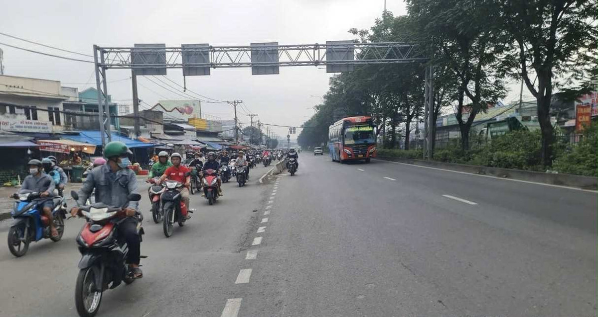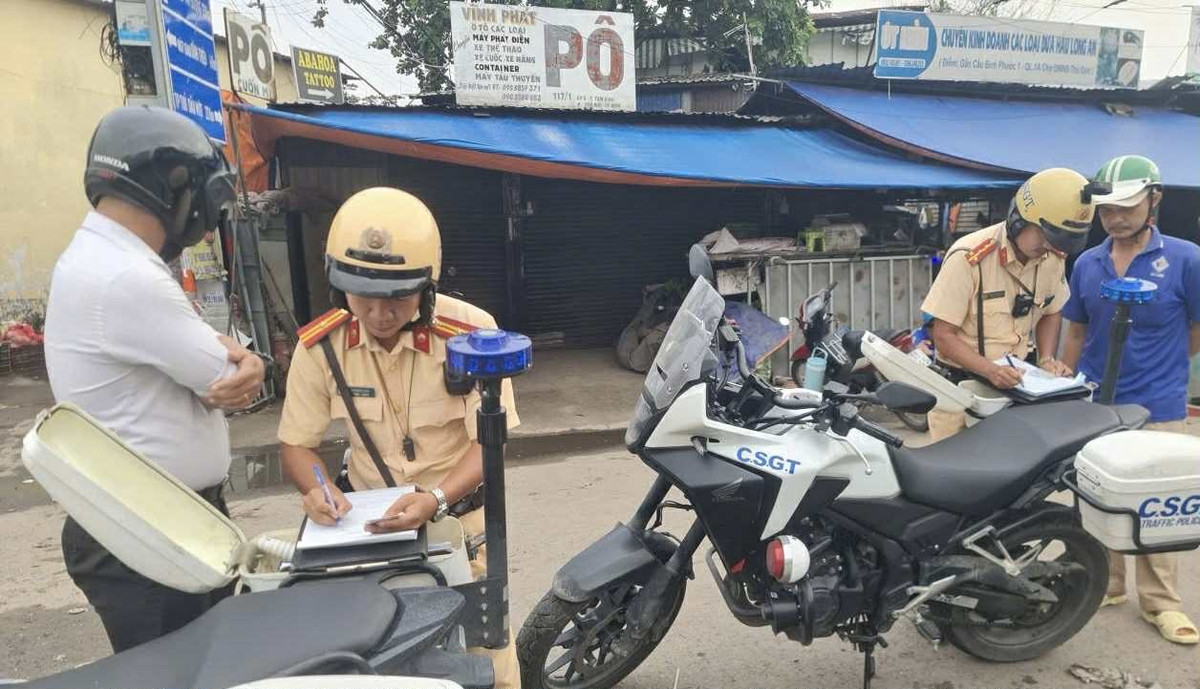 Từ đầu giờ sáng 16/10, lực lượng thuộc Đội CSGT Rạch Chiếc (PC08- Công an TP HCM) đã làm nhiệm vụ chốt chặn, tuần tra xử lý hành vi người điều khiển xe máy 2 bánh lưu thông vào đường cấm trên đường Đỗ Mười (QL1 cũ, phường Tam Bình, TP HCM).