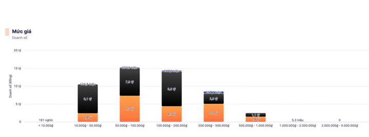 Đáng chú ý, bánh giá rẻ chỉ từ 10.000 - 50.000 đồng đã mang về doanh số hơn 10,5 tỷ đồng. Ở nhóm bánh giá rẻ này, riêng TikTok Shop đã chiếm 8,1 tỷ đồng.