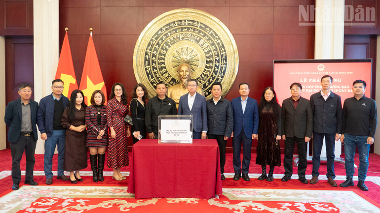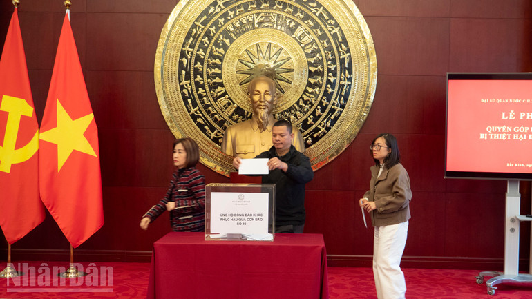Đại diện cộng đồng người Việt Nam tại Bắc Kinh tham gia quyên góp, ủng hộ.