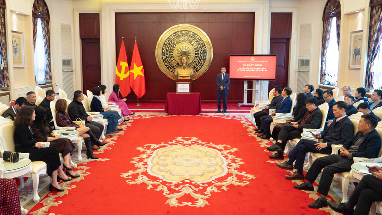 Phát biểu tại buổi lễ, Đại sứ Việt Nam tại Trung Quốc Phạm Thanh Bình bày tỏ xúc động và trân trọng cảm ơn sự hưởng ứng tích cực của toàn thể cán bộ, nhân viên, các cơ quan cũng như cộng đồng người Việt Nam tại Bắc Kinh.