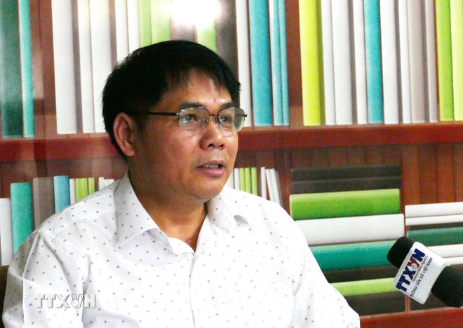 Ông Hoàng Văn Quân, Phó Chủ tịch Hội doanh nghiệp Việt Nam tại Lào, Chủ tịch kiêm Tổng Giám đốc Công ty NNC Pharma, chia sẻ cảm nhận. (Ảnh: Xuân Tú/TTXVN)