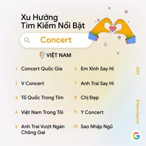 Ngày 5-12, Google giới thiệu báo cáo “Year in Search 2025”, tổng hợp 10 nhóm chủ đề nổi bật gồm xu hướng chung, tạo ảnh, phim ảnh, phim Việt Nam, concert, bài hát, tin tức, cách làm và du lịch.