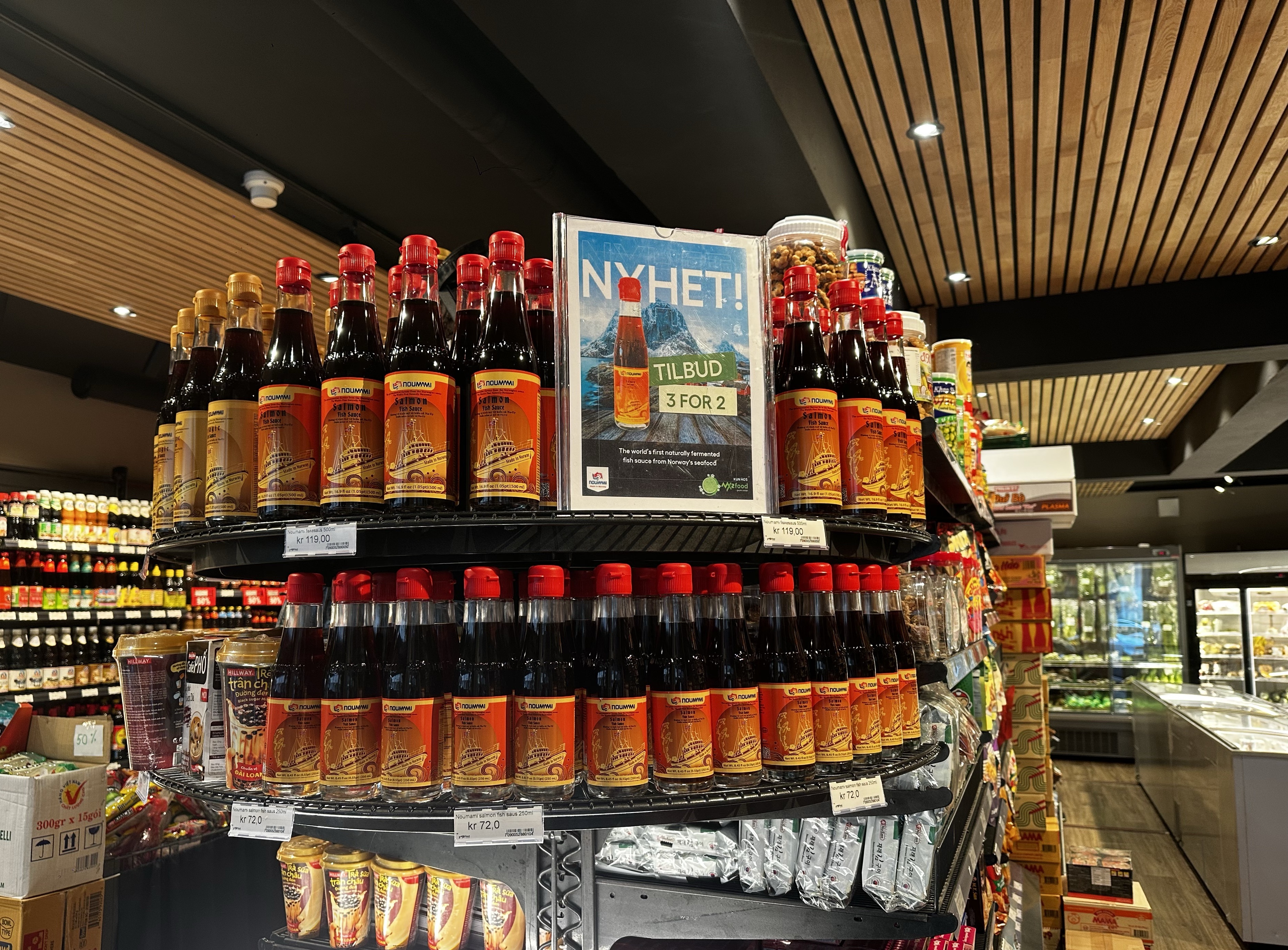 Nước mắm Noumami được bày bán tại các siêu thị tại Thụy Điển (Ảnh: Nhân vật cung cấp)