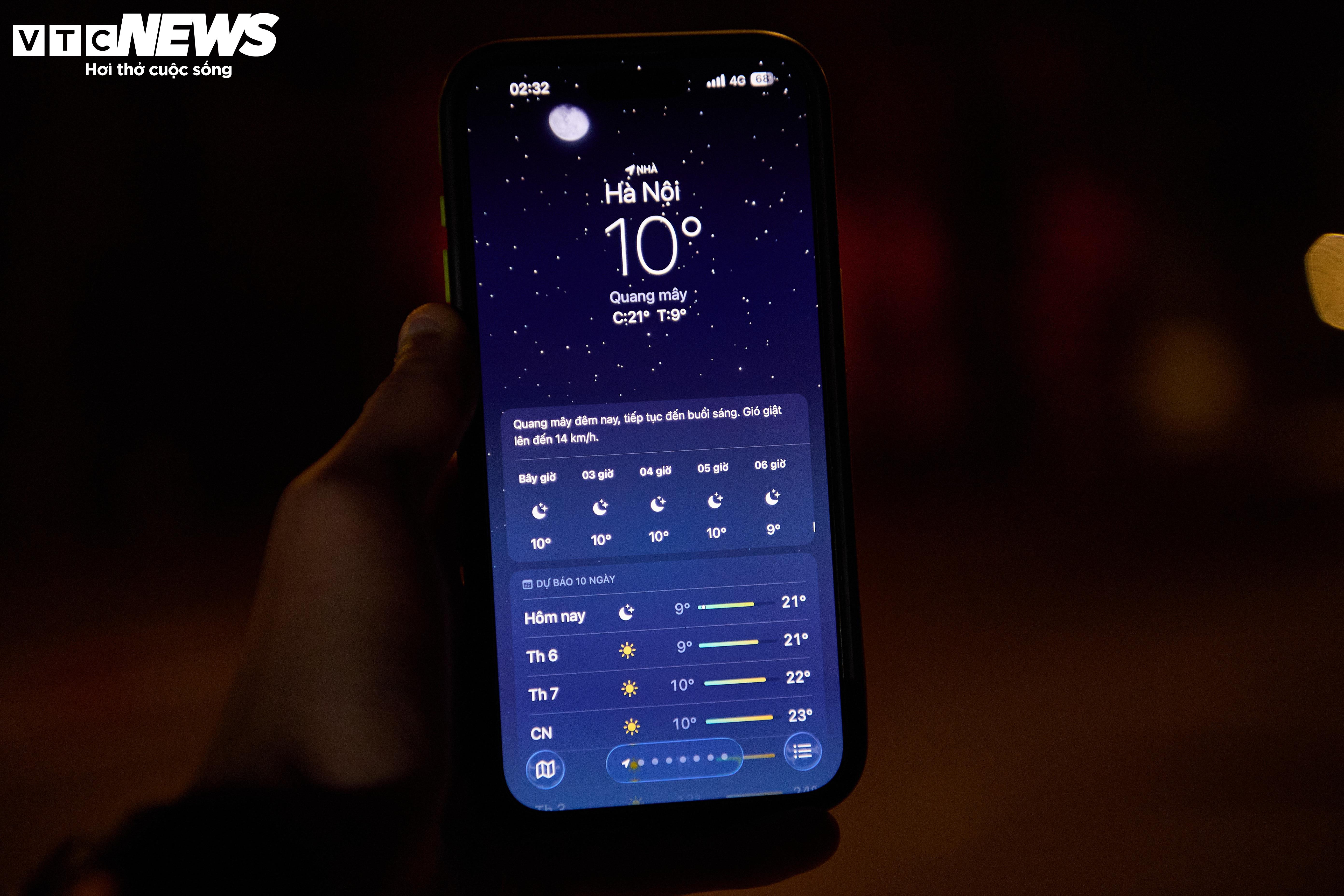 Đợt không khí lạnh tăng cường mạnh tràn về khiến Hà Nội bước vào những ngày rét sâu nhất từ đầu mùa đông. Nhiệt độ ban đêm dao động 10-13°C, có thời điểm hạ xuống dưới 10°C.