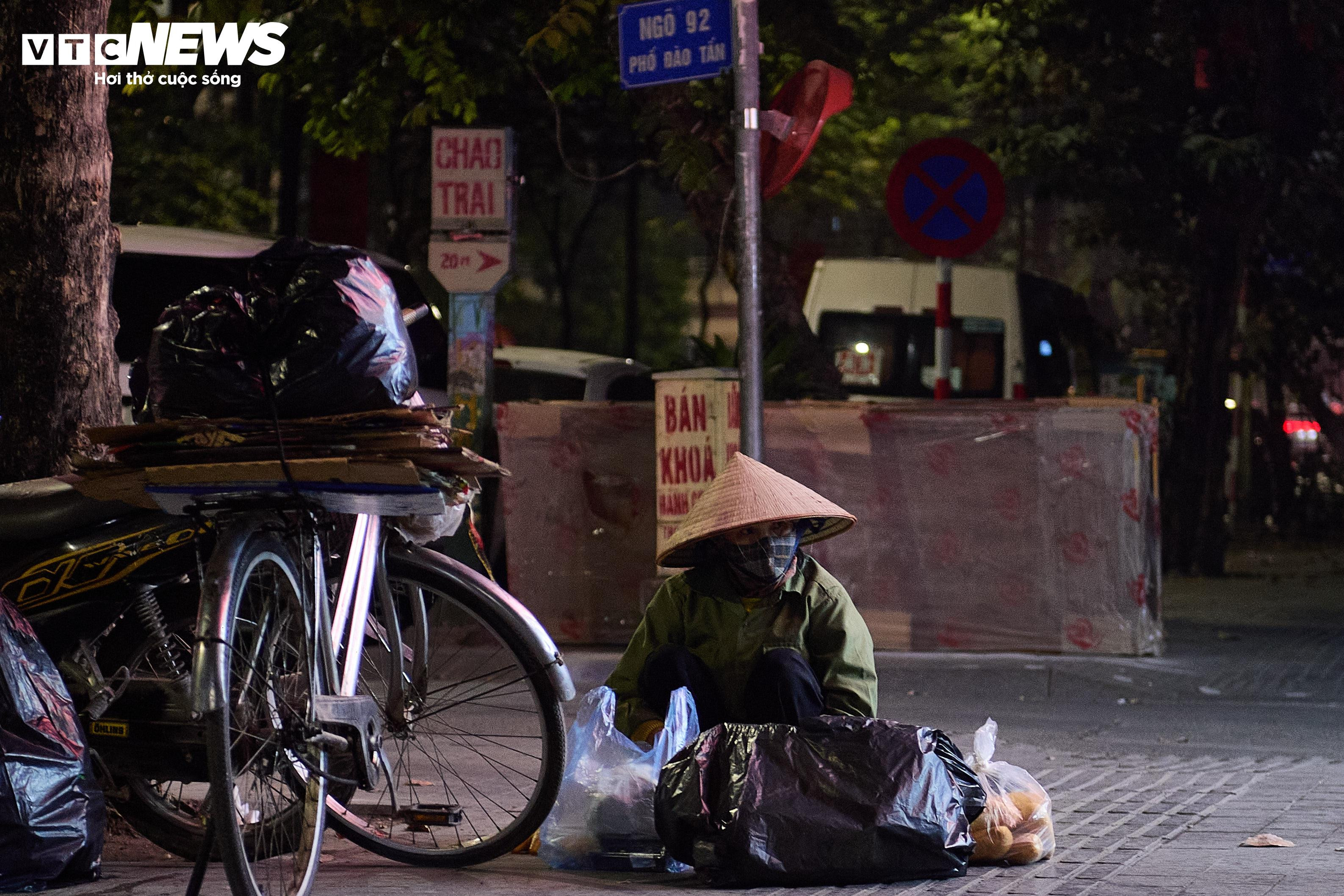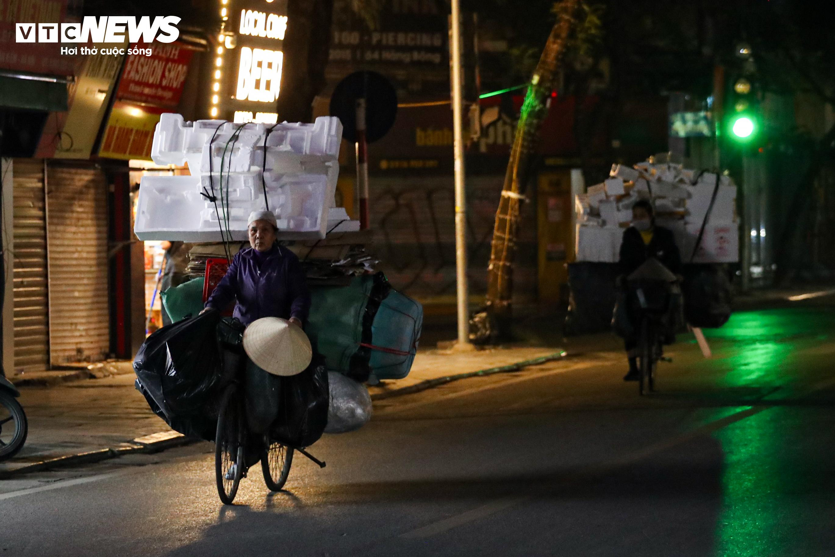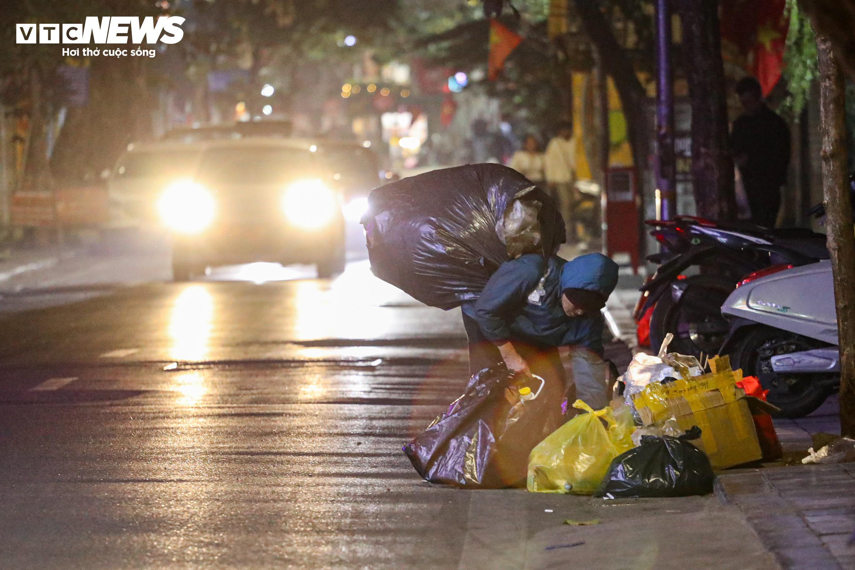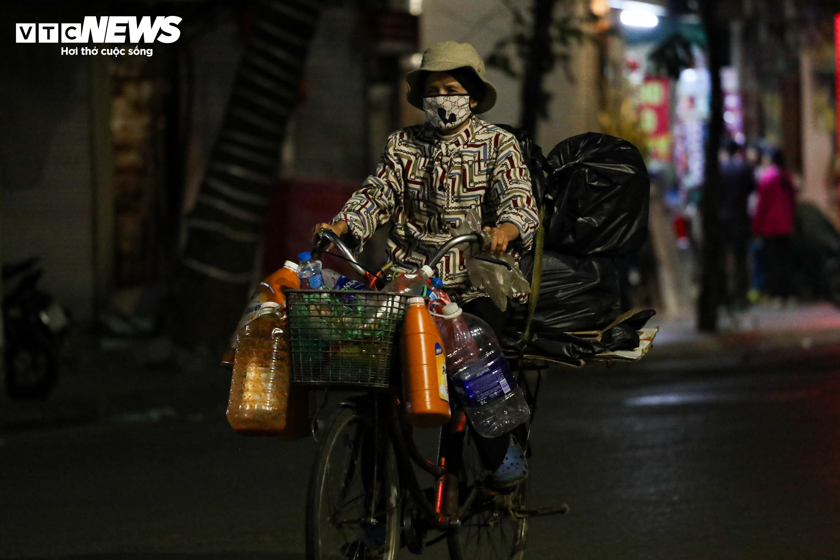 Những người thu gom phế liệu, ve chai tranh thủ lượm lặt từng món đồ bỏ lại trên phố.