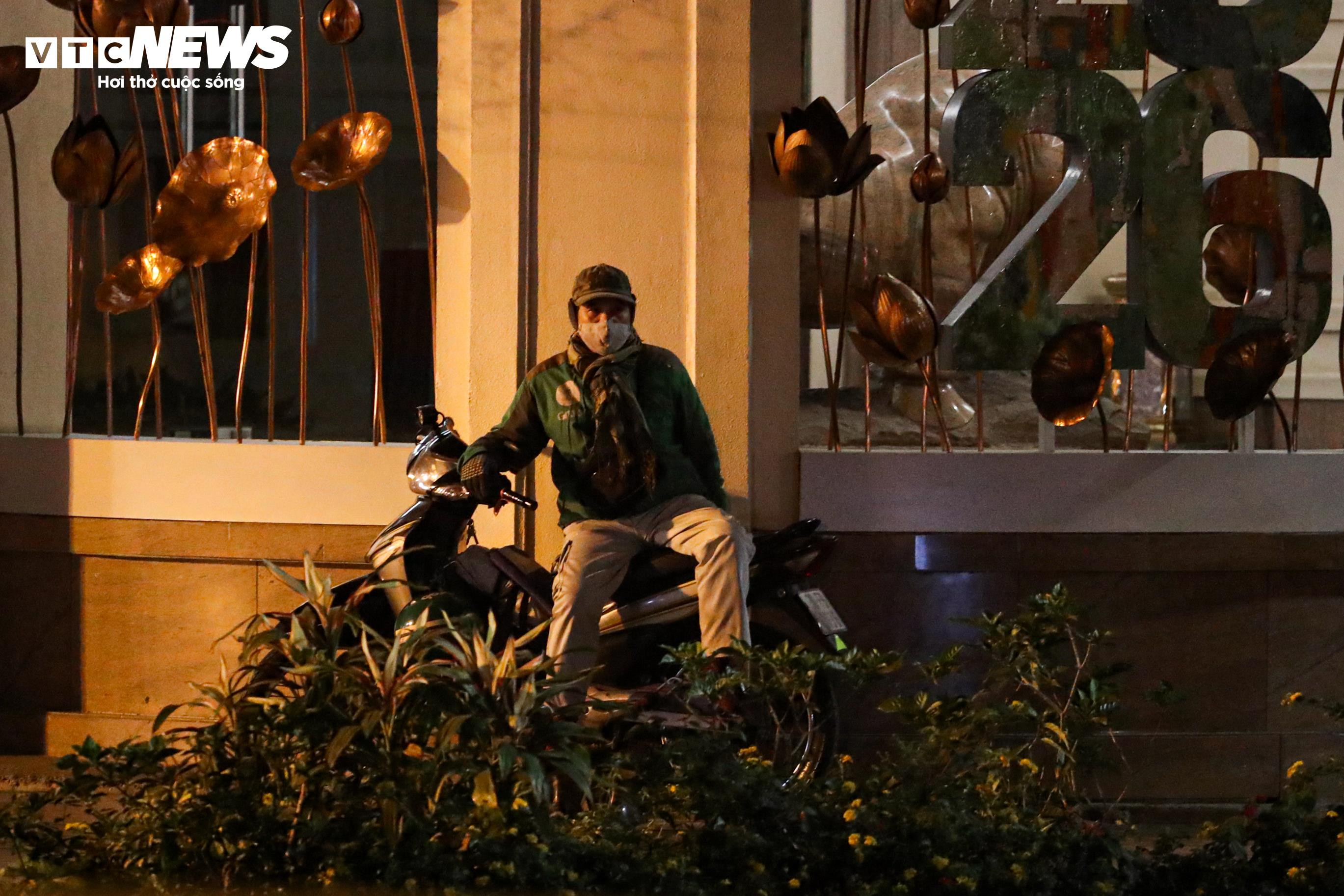 Các tài xế công nghệ tạm ngồi nghỉ bên góc phố, kiên nhẫn chờ cuốc xe giữa đêm lạnh.