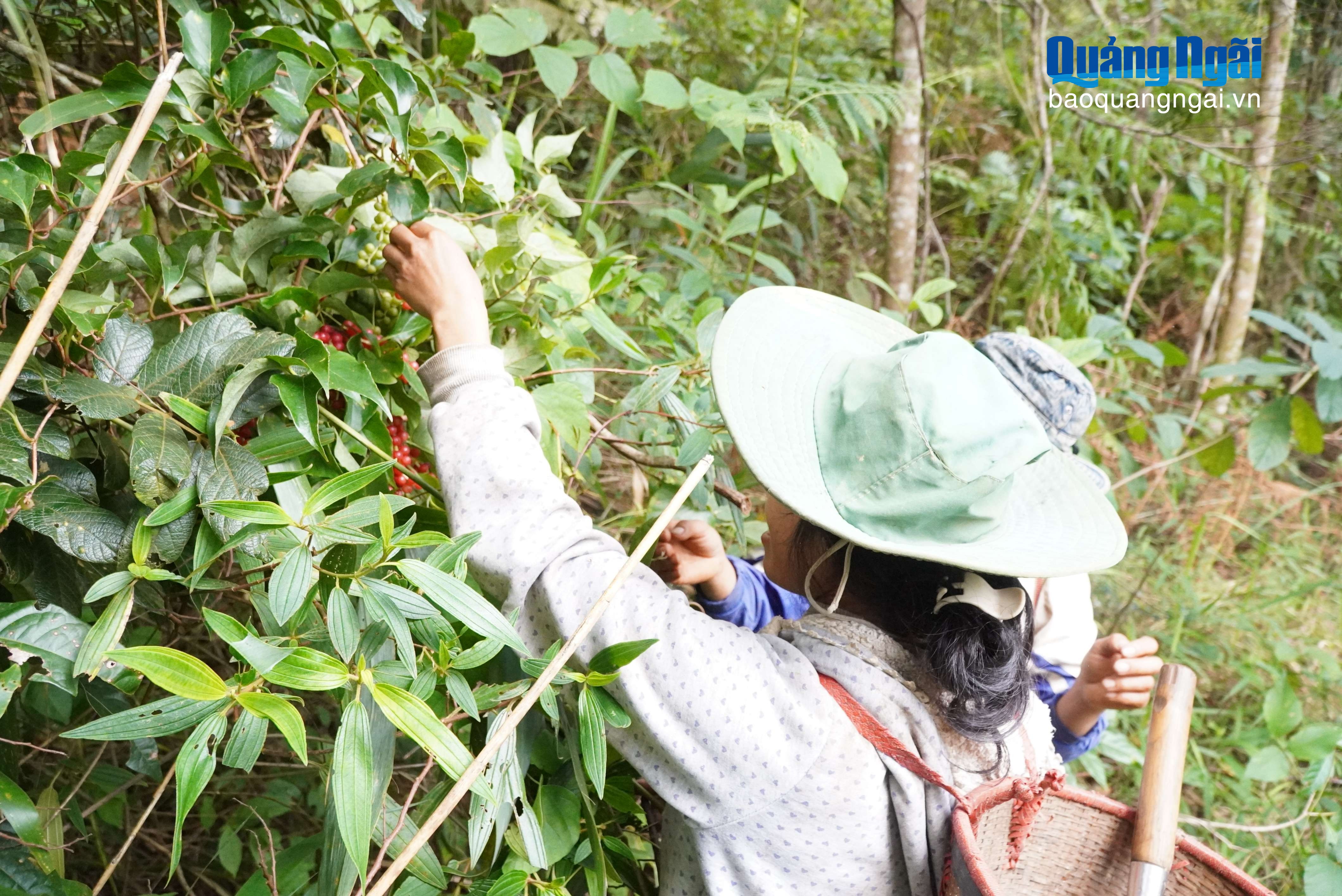 Từ sáng sớm, sau khi lo xong chuyện gia đình và chuẩn bị những vật dụng cần thiết như bao, gùi, rựa, 2 chị em lại lặn lội vào những cánh rừng ở đỉnh Đăk Chum 1 săn “hạt ngọc trời”. Các chị đi xe máy đến khu rừng cách nhà khoảng 3km, để xe ở lại bìa rừng rồi đi bộ vào trong rừng, nơi có nhiều cây ngũ vị tử.