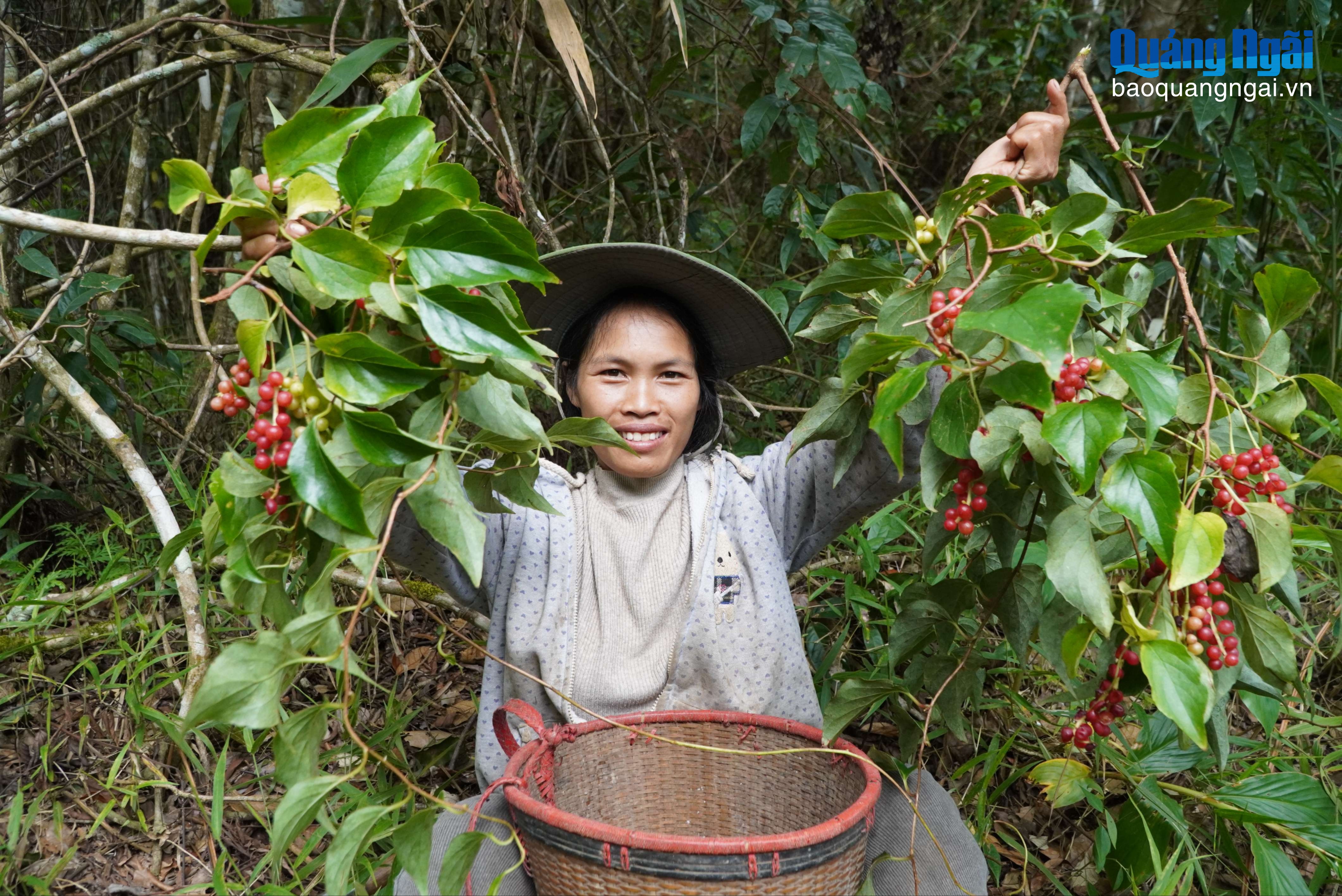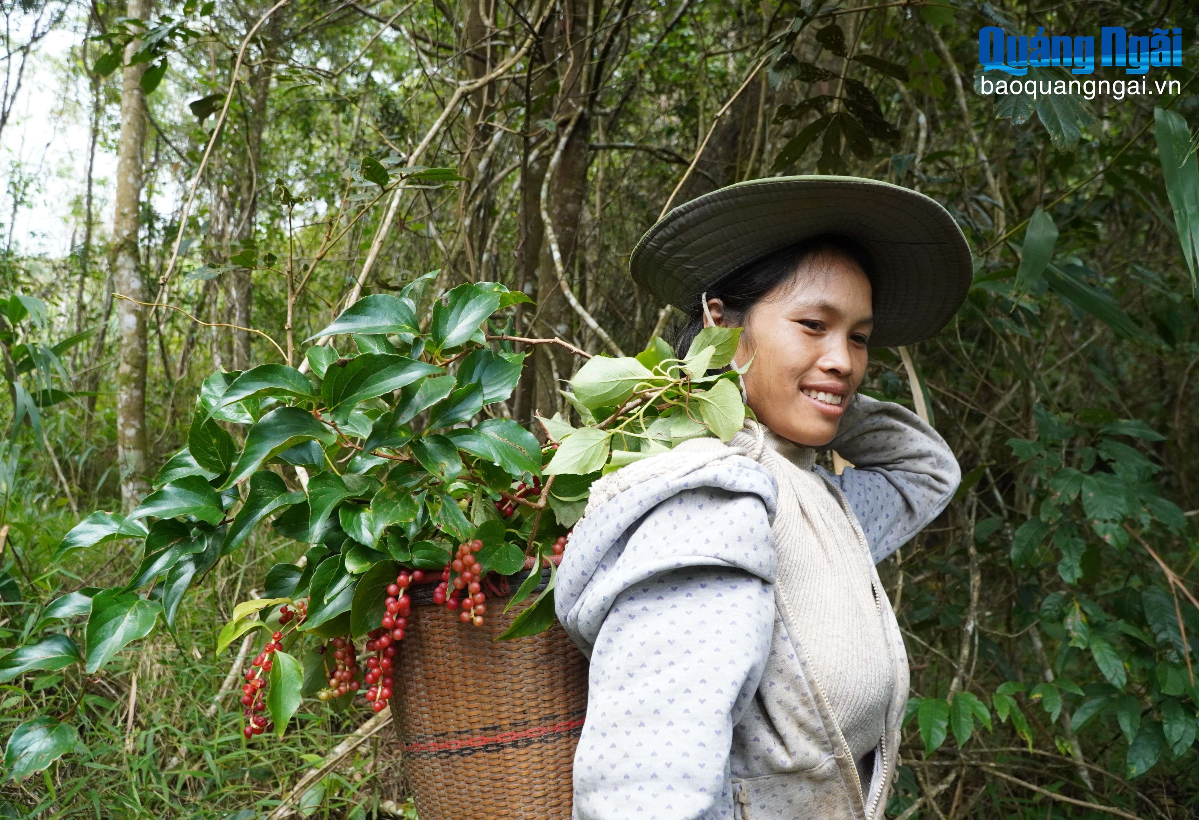 Chưa đầy một buổi, ngũ vị tử đã đầy ắp trong chiếc gùi của 2 chị em. Trung bình một ngày, 2 chị thu hoạch xấp xỉ 30kg ngũ vị tử, với giá bán khoảng 25 nghìn đồng/kg, mỗi người được khoảng 750 nghìn đồng.