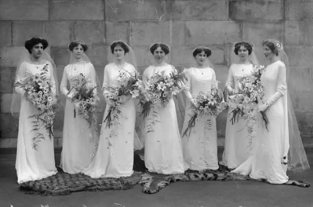 Ban đầu, cô dâu và các phù dâu đều mặc giống nhau. (Ảnh: Getty Images)