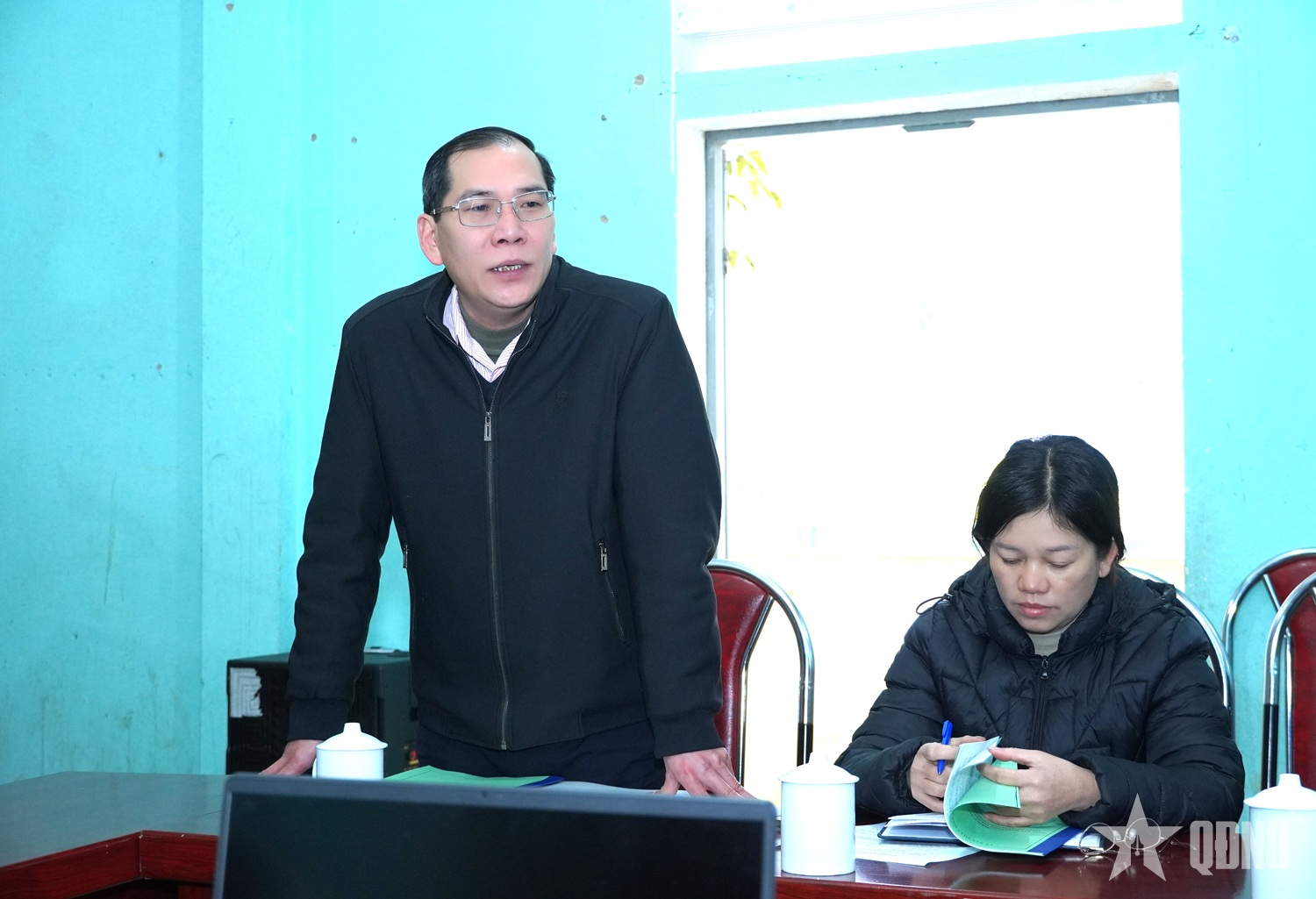 Đồng chí Trần Việt Hùng, Phó chủ tịch UBND xã Sơn Vĩ (Tuyên Quang) chủ trì hội nghị.