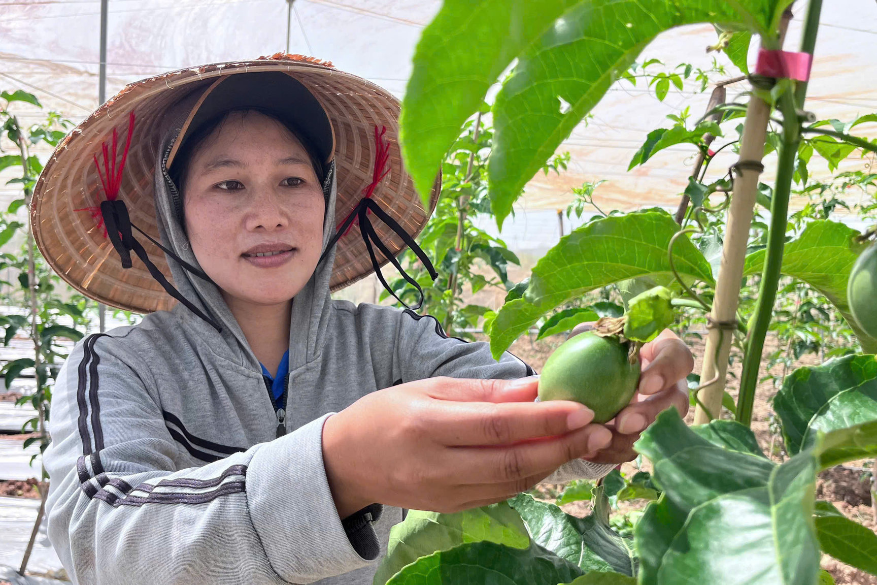 Chị Nai Tinia sắp thu hoạch lứa chanh dây đầu tiên sau khi tái đầu tư