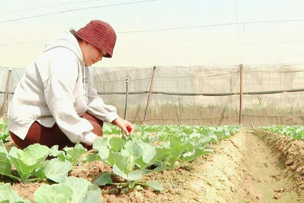Chị Touneh Nai Khuyên đang tích cực chăm sóc vườn rau