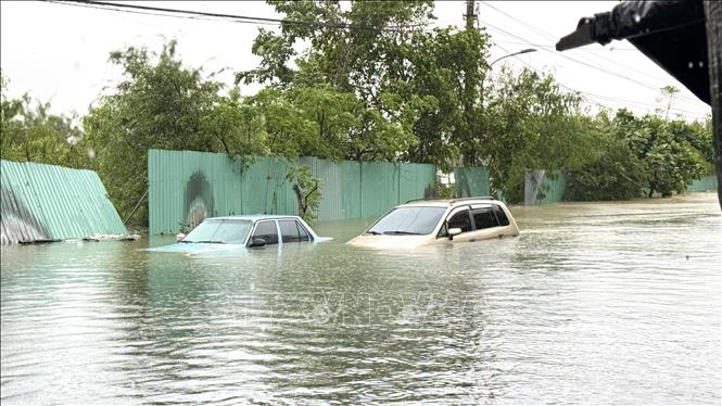 Nhiều phương tiện bị nhấn chìm. Ảnh: Tường Quân/TTXVN