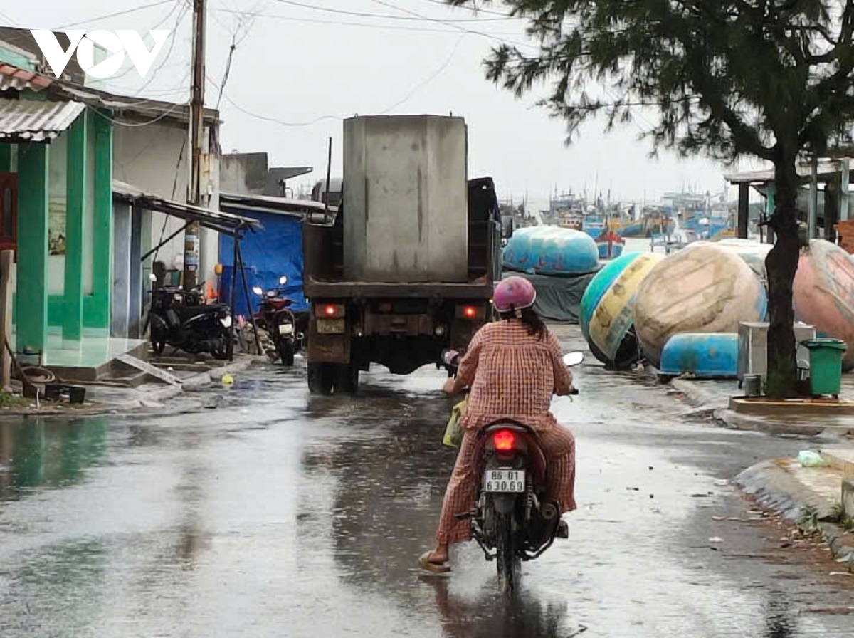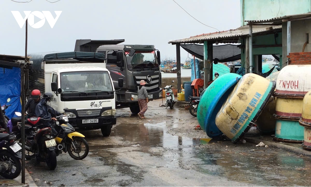 Khu vực xe ra vào cảng cá thường xuyên, tuy nhiên không có người hướng dẫn điều tiết