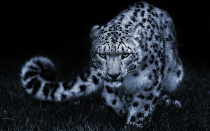 Thợ săn lặng lẽ và chính xác. Báo tuyết có khả năng nhảy xa tới 15 mét trong một cú vồ mồi. Chúng dùng sức mạnh cơ bắp và sự yên lặng tuyệt đối để phục kích con mồi như dê núi, linh dương và thỏ tuyết. Ảnh: Pinterest.
