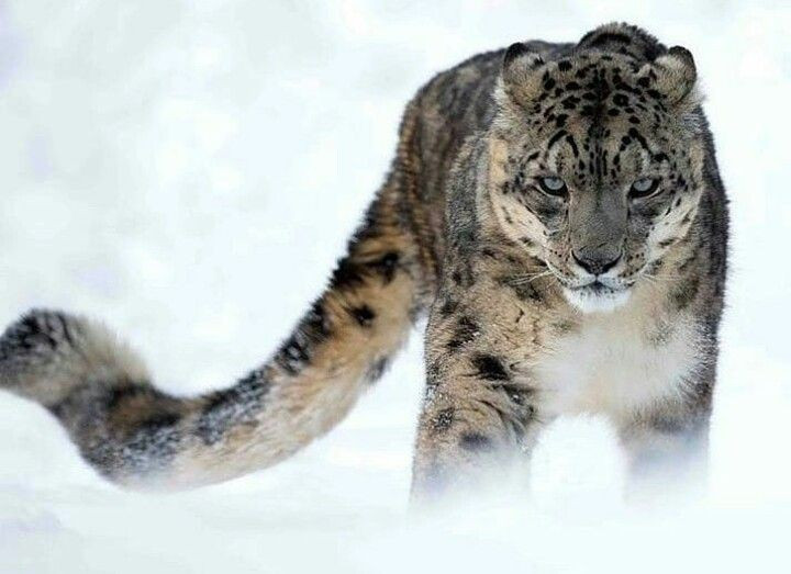 Đuôi dài giúp giữ thăng bằng và sưởi ấm. Chiếc đuôi dày và dài gần bằng cơ thể không chỉ giúp báo tuyết giữ thăng bằng khi leo trèo mà còn được quấn quanh người như một chiếc khăn ấm trong giấc ngủ. Ảnh: Pinterest.