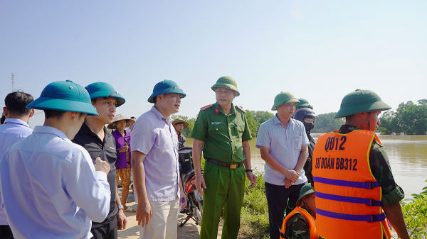 Sáng 9/10, Đại tá Dương Đình Thành, Phó Giám đốc Công an tỉnh Thái Nguyên đã trực tiếp kiểm tra, chỉ đạo công tác ứng phó trước cảnh báo ngập lụt và nguy cơ vỡ đê tại khu vực đê Chã.