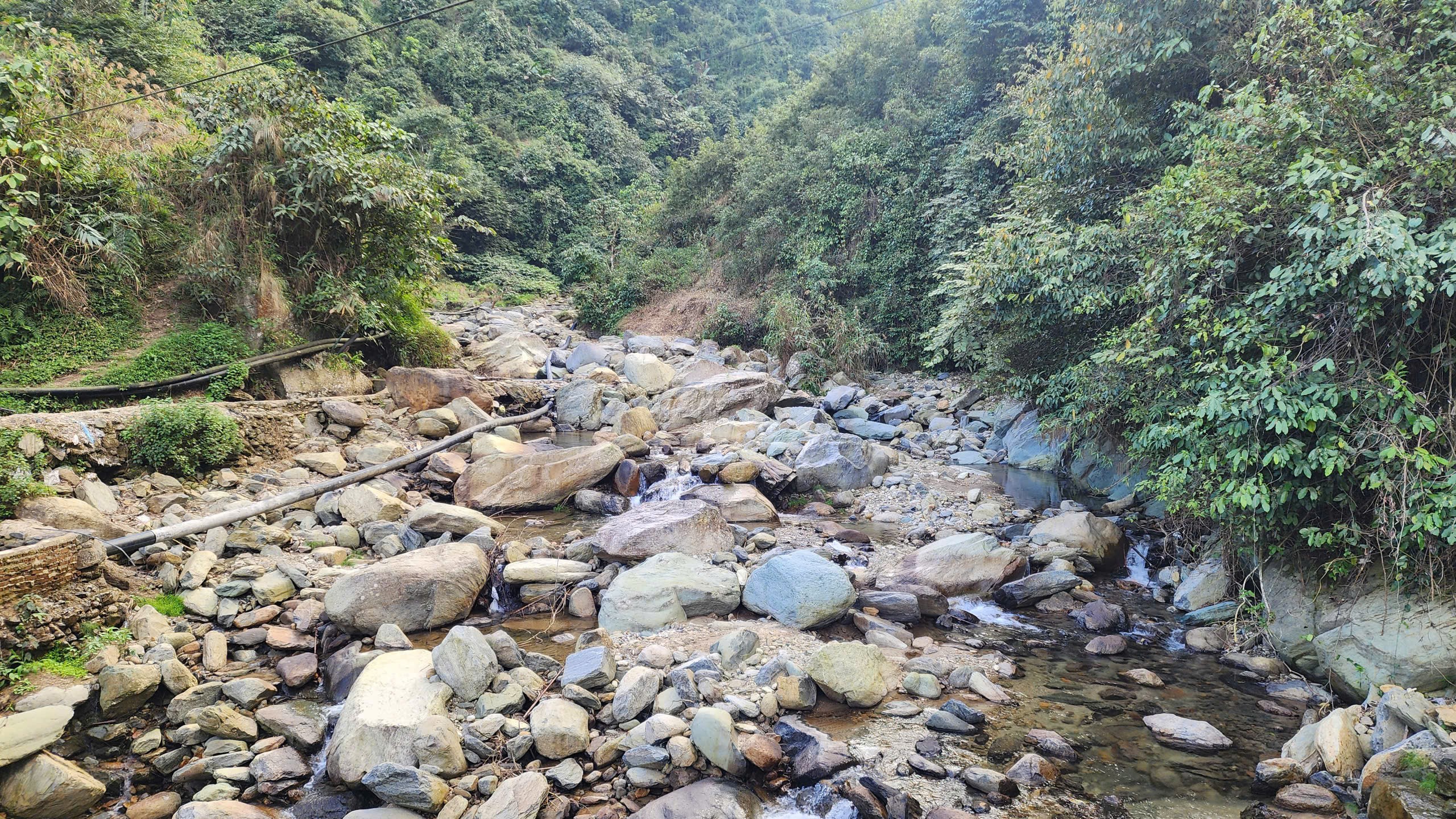 Dòng suối Nậm Lùng chảy qua địa phận thôn Búng Sủm (ảnh chụp chiều 27/02).