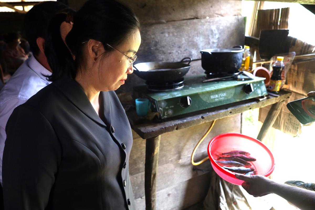 Phó Chủ tịch UBND thành phố Nguyễn Thị Anh Thi tìm hiểu cách làm món cá ủ chua của người dân.