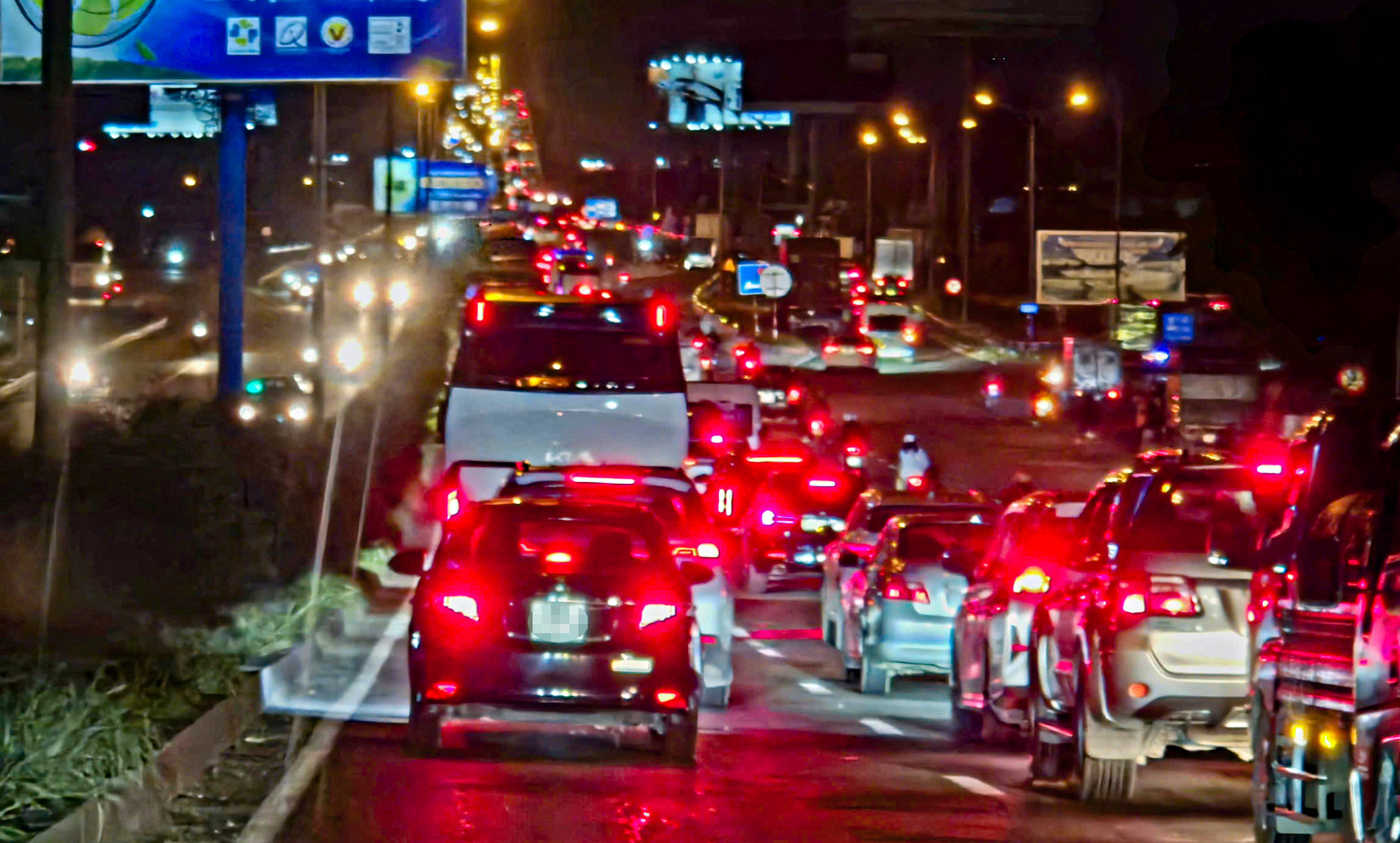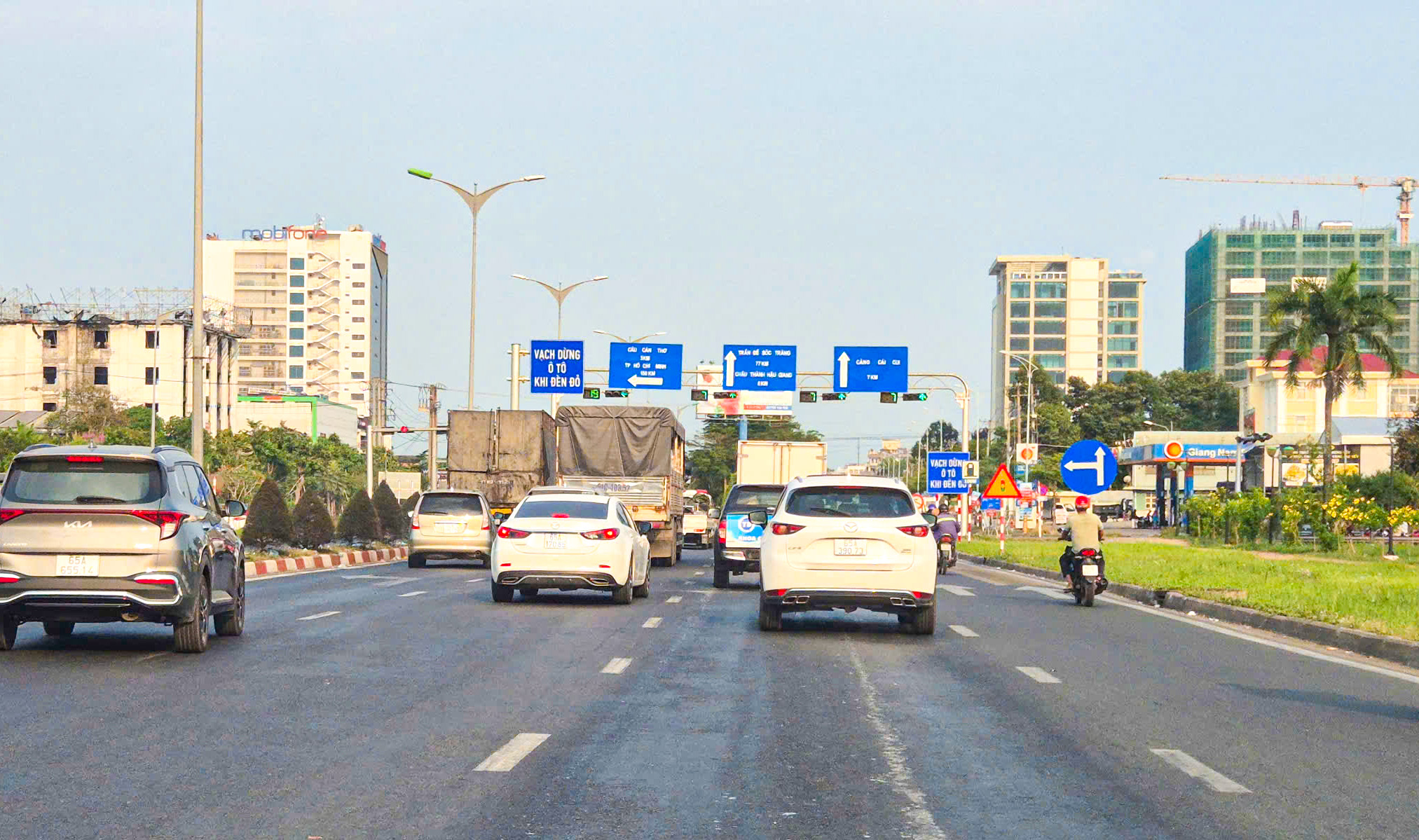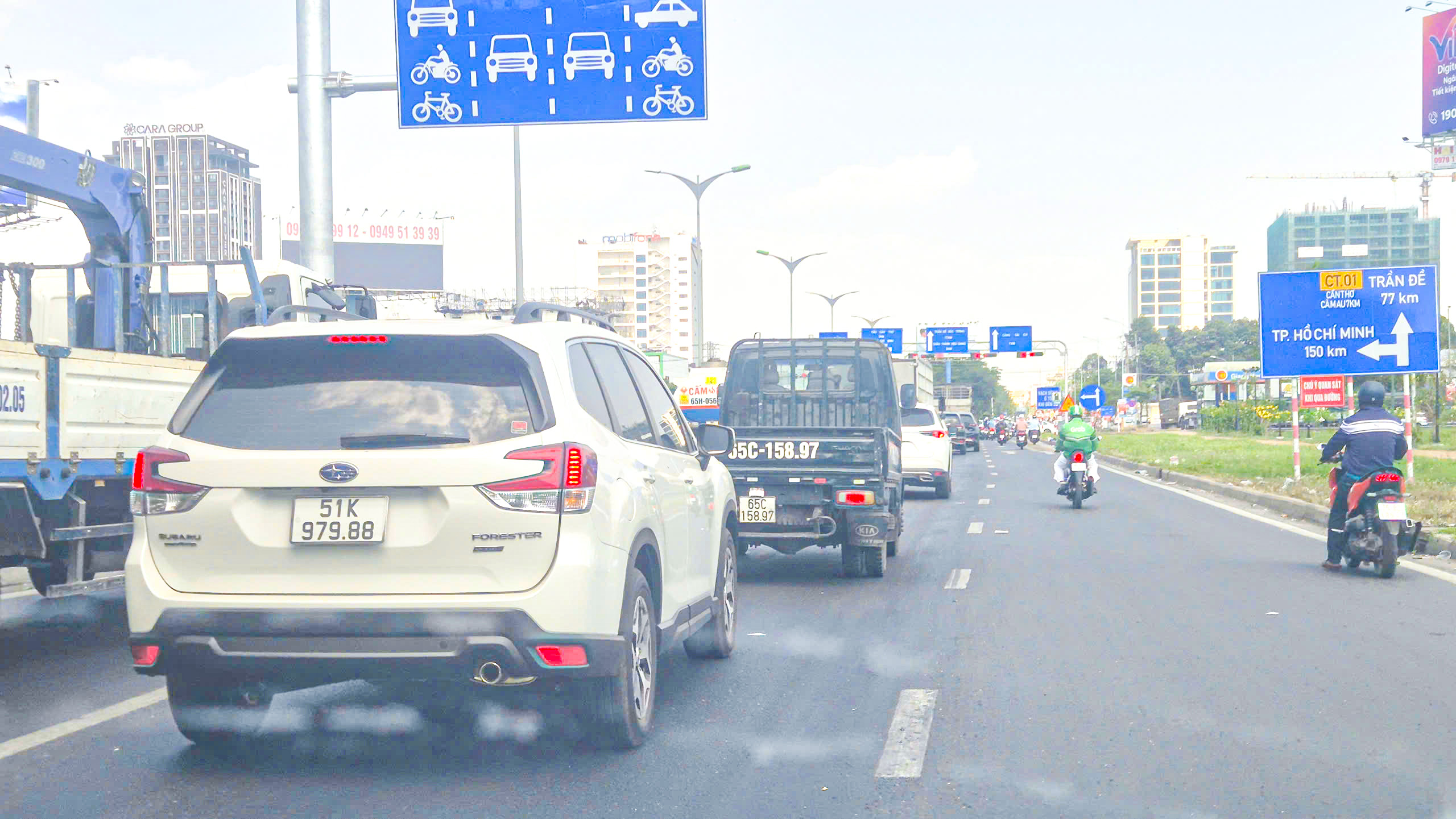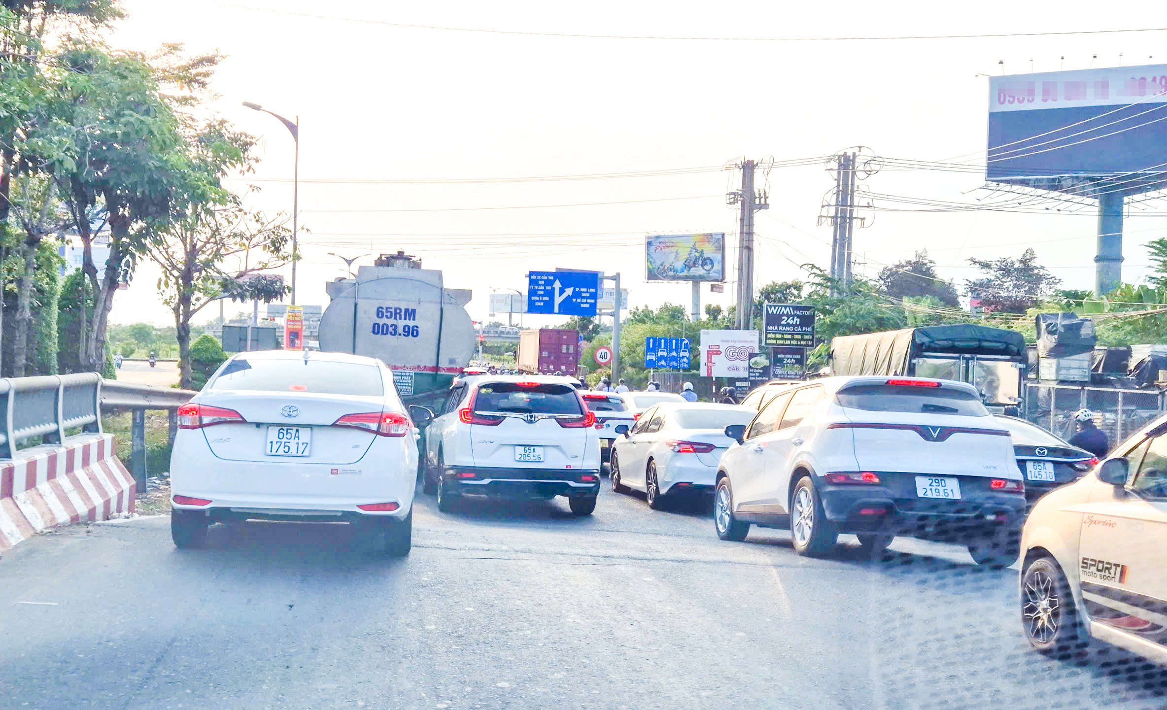 Dòng phương tiện nối đuôi tại nút giao IC3 để rẽ qua cầu Cần Thơ lên TPHCM