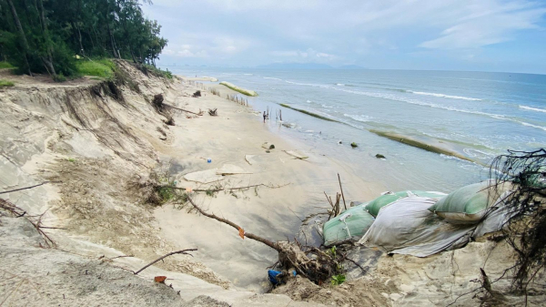 Chiều 19/10, lãnh đạo UBND phường Hội An Tây (Đà Nẵng) cho biết, những ngày qua, tại khối phố Tân Thành (phường Hội An Tây), sóng lớn liên tục đánh mạnh vào bờ khiến một đoạn bờ biển dài hơn 200m bị sạt sâu, tạo vách đứng cao từ 5 đến 6m, sát ngay khu dân cư và các cơ sở du lịch ven biển. Hàng loạt cây phi lao, dừa chắn sóng lâu năm bị bật gốc, phần chân kè bị khoét rỗng, nhiều công trình đứng trước nguy cơ sụp đổ. Người dân địa phương sống trong tâm trạng lo lắng khi đất cát bị cuốn trôi từng mảng lớn.