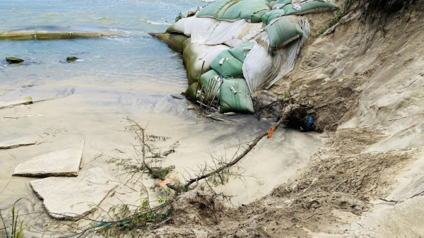 Hiện tượng sạt lở xuất hiện từ đầu tháng 10, diễn biến ngày càng nghiêm trọng do ảnh hưởng của bão Fengshen kết hợp triều cường và gió mạnh. Chính quyền cùng người dân đã nỗ lực đắp bao cát, đặt cọc tre, trải thảm xơ dừa nhằm giảm tốc độ xói lở, nhưng hiệu quả không cao.