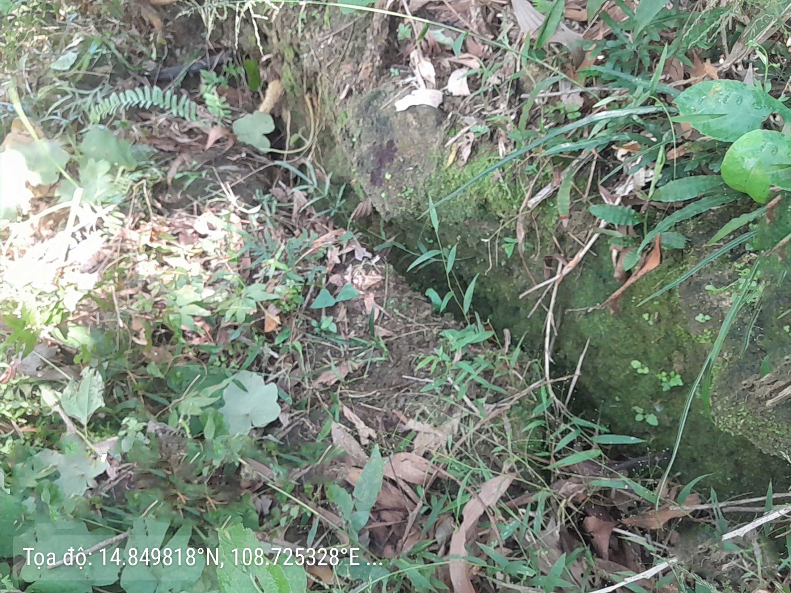 Điểm thứ 2 ghi nhận có vết nứt đất ngang sườn núi. Ảnh: UBND xã Ba Vinh