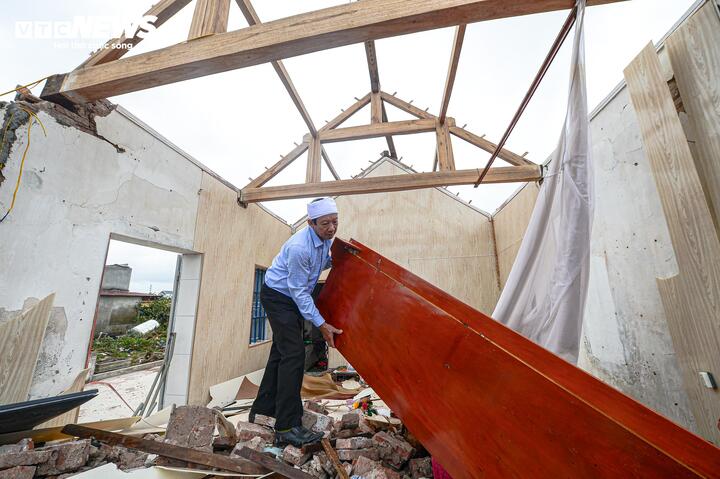 Một ngôi nhà ở Ninh Bình bị lốc xoáy tàn phá.
