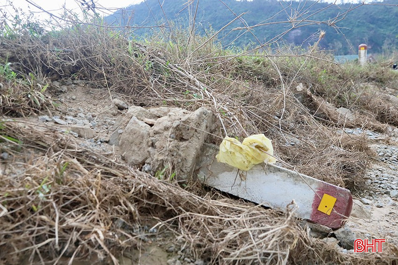 Nhiều cột mốc bị đổ gãy, các vị trí xói mòn sâu tới 1,5 m tạo nên sự "chênh vênh" của mặt đường, tiềm ẩn nhiều nguy hiểm cho người và phương tiện khi qua lại.