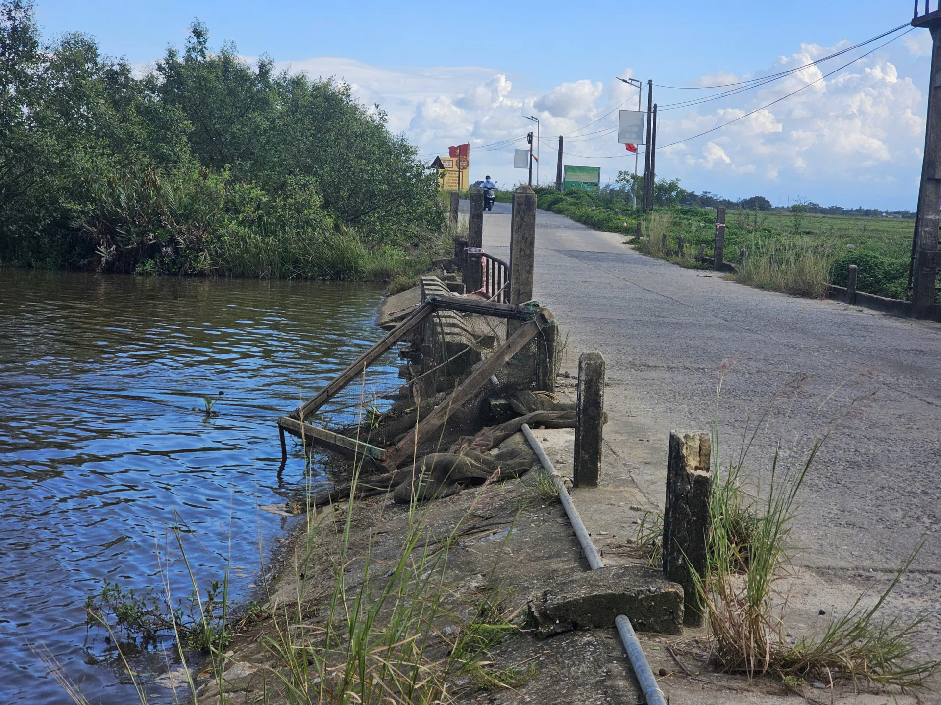 Mặt tràn lởm chởm ổ gà; rào chắn hai bên thành gãy đổ, được người dân thay bằng những thanh sắt chắn tạm bợ. Không những thế, do cao độ mặt tràn thấp hơn cao độ mặt đường hiện trạng khoảng 1m-1,2m nên mỗi khi mùa mưa đến, lưu lượng nước đổ về lớn, tràn qua mặt đường, gây khó khăn cho việc đi lại của người dân, đặc biệt là các em học sinh.